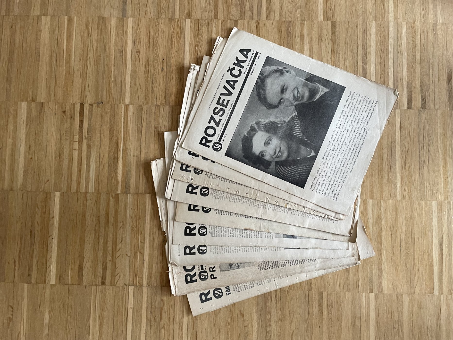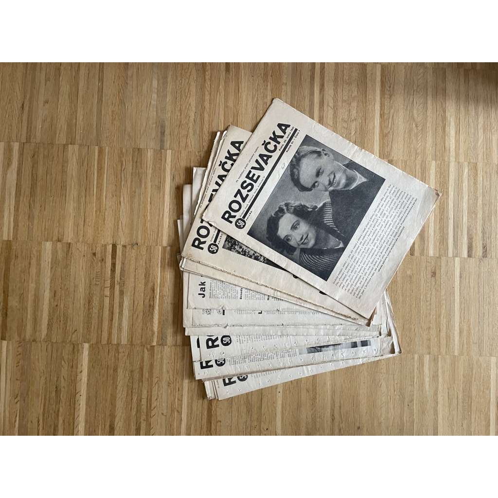 Přehnuté složky, každé číslo 12 stran, rozměry: 23 x 31 cm.