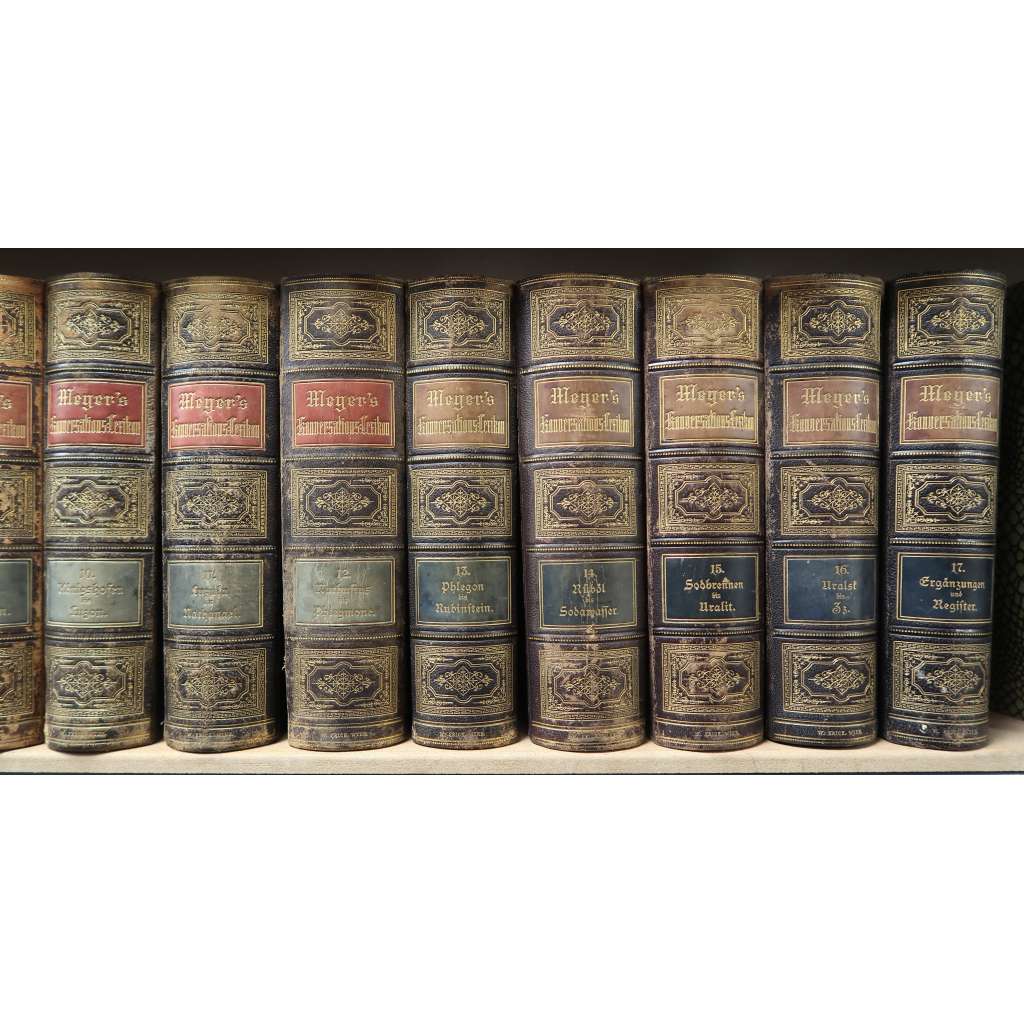LEXIKON MEYERS -KOMPLET 17 SVAZKŮ- VAZBY KŮŽE - Konversations-Lexikon Encyklopedie