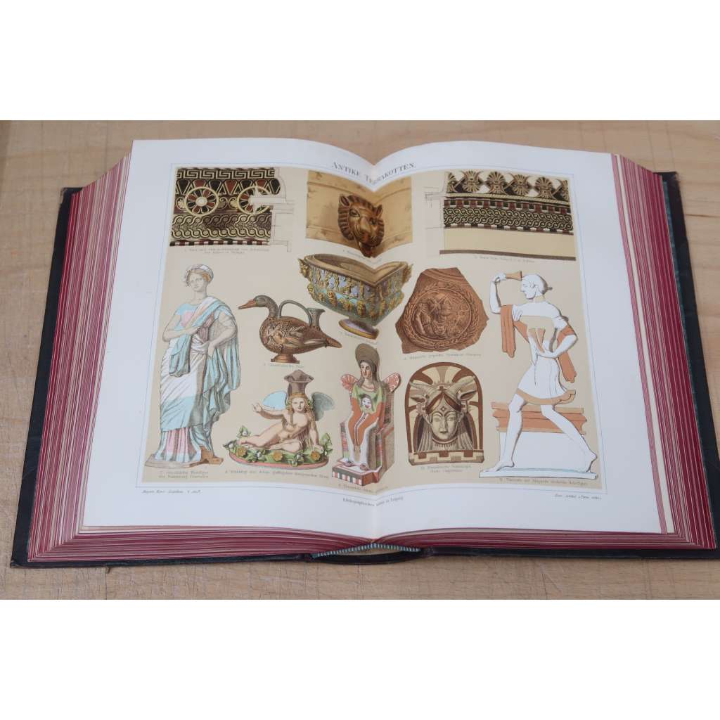 Uvnitř velké množství barevných i čb příloh (barevné chromolitografie, mapy); formát 8°, A5. Jedná se o jedno z nejkrásnějších vydání, tento slovník byl vzorem pro Ottův slovník naučný.