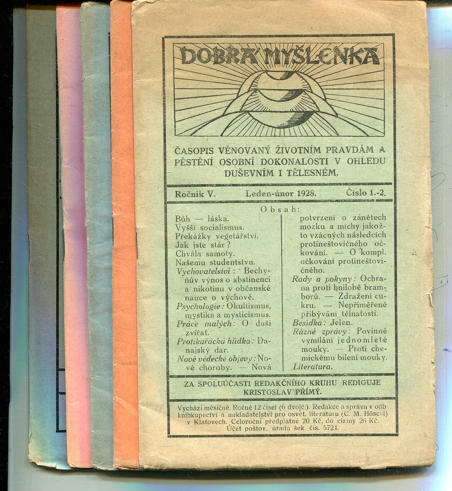 Stav velmi dobrý, lejce odřené obálky a hřbety, chybí listopadové číslo. V prvním čísle je podtrháváno propiskou
