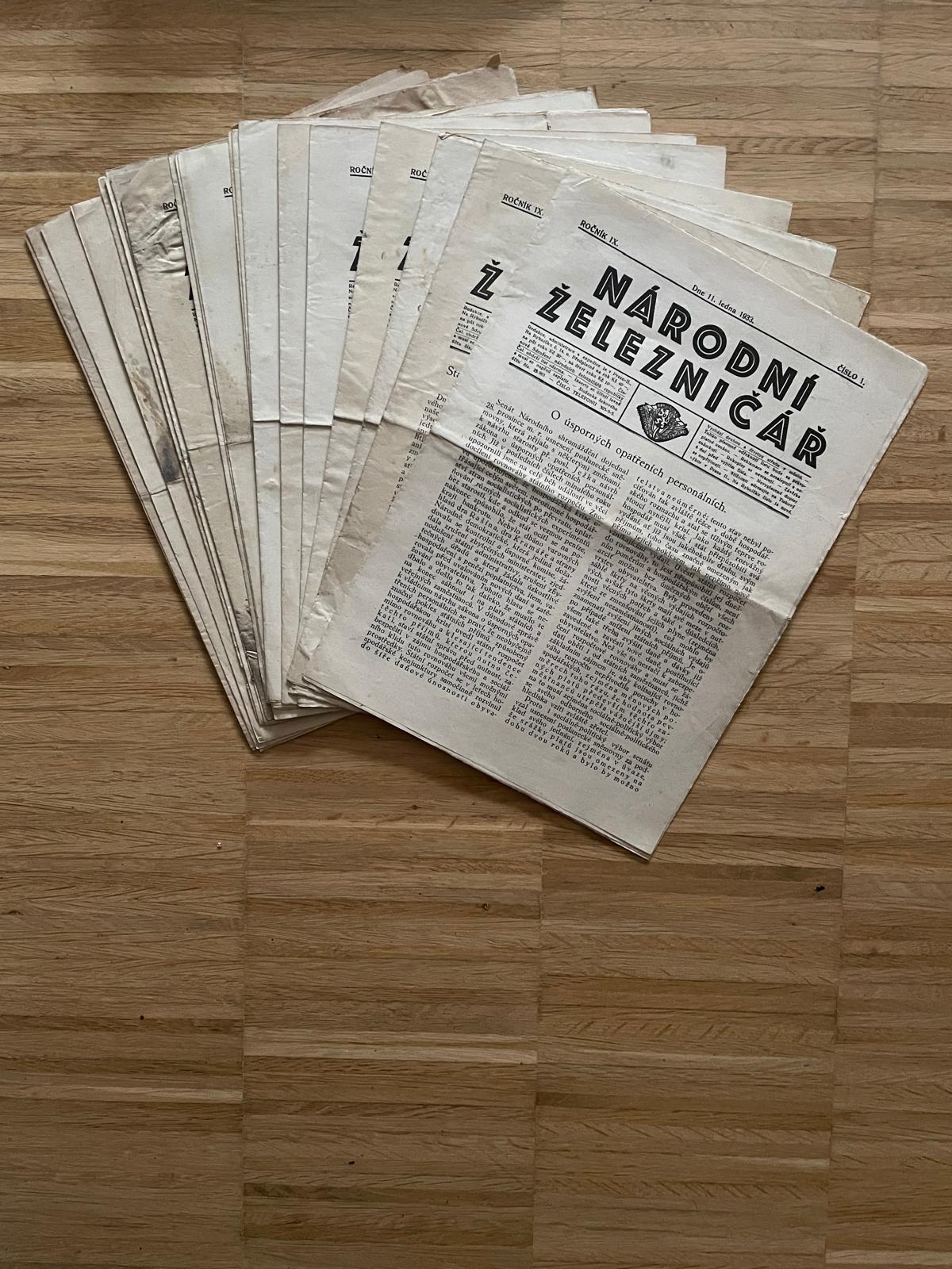 Přehnuté složky, rozměry cca:28 x 38 cm. Každé číslo 4 strany
