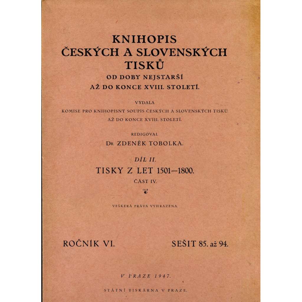 Stav dobrý, desky a hřbet jsou lehce ušpiněné. Na přídeští je nalepeno celostránkové ex libris - Miloš D. Zelenka.