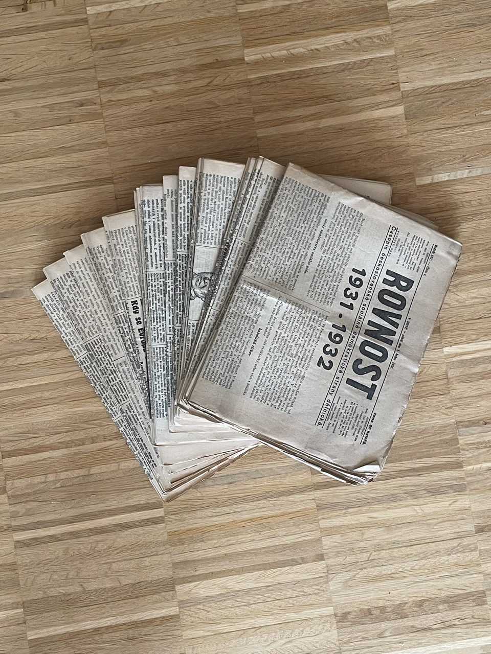 Přehnuté složky, každé číslo 12 stran, rozměry: 23 x 31 cm.