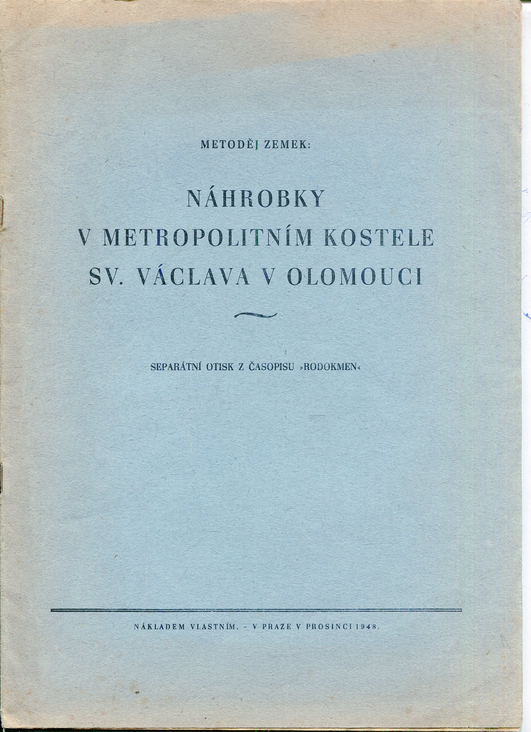 Dobrý stav, obálka je lehce zašpiněná, mírně zažloutlá a lehce odřená, přední část obálky je téměř utržená od hřbetu, zadní část obálky a několik posl. stran je v dolní části natrženo