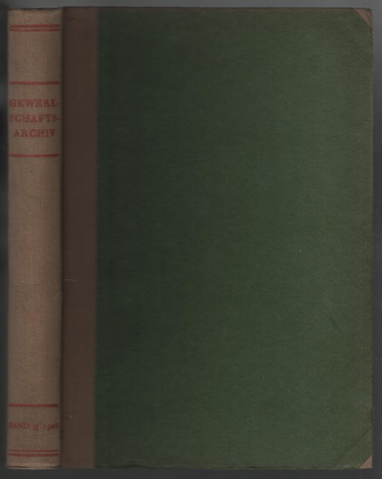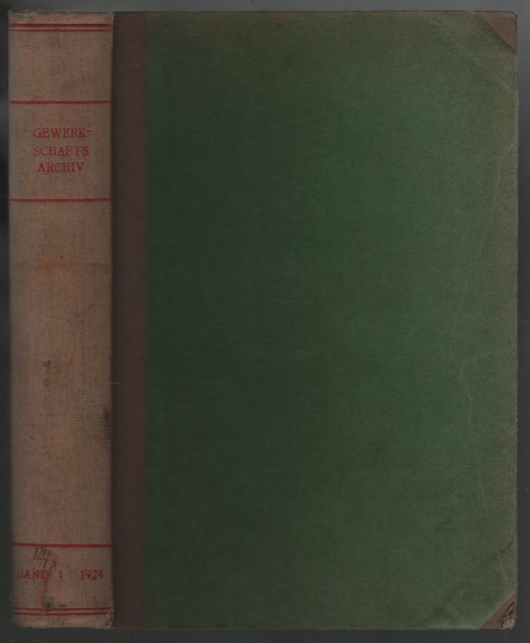 Jena: Verlag Gewerkschafts-Archiv 1924. Pův. poloplátěná vazba s titulem na hřbetu, podpisem majitele a Ex libris na předsádce, 432 stran, 4° (16 x 23 cm)