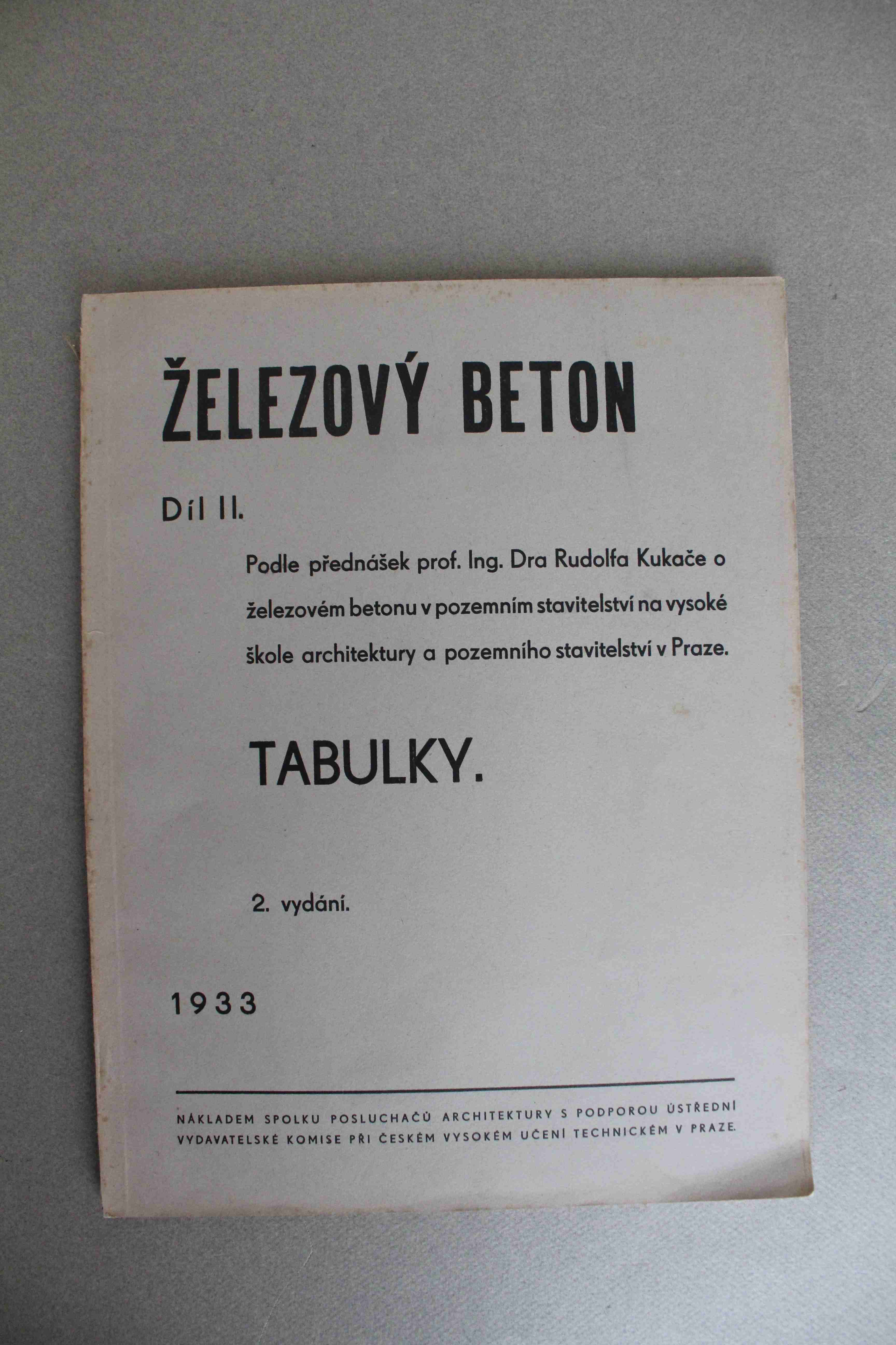 Praha, Nákladem Spolku posluchačů architektury s podporou Ústřední vydavatelské komise při Českém vysokém učení technickém, 1933