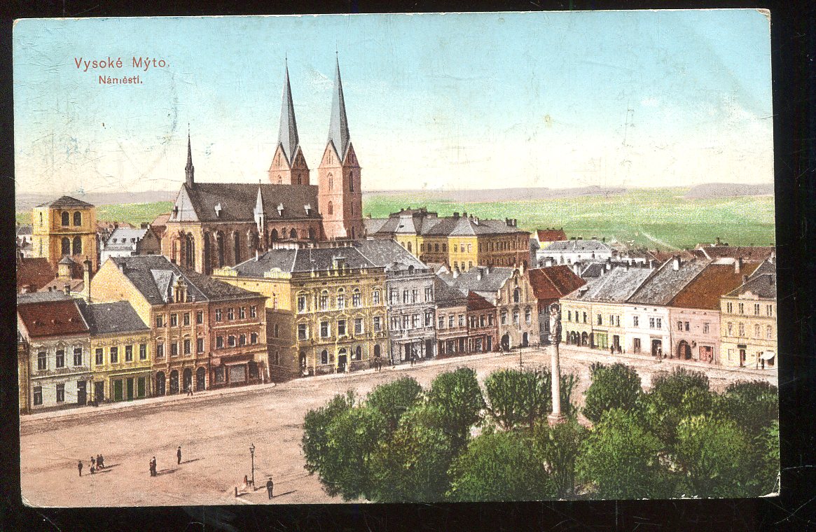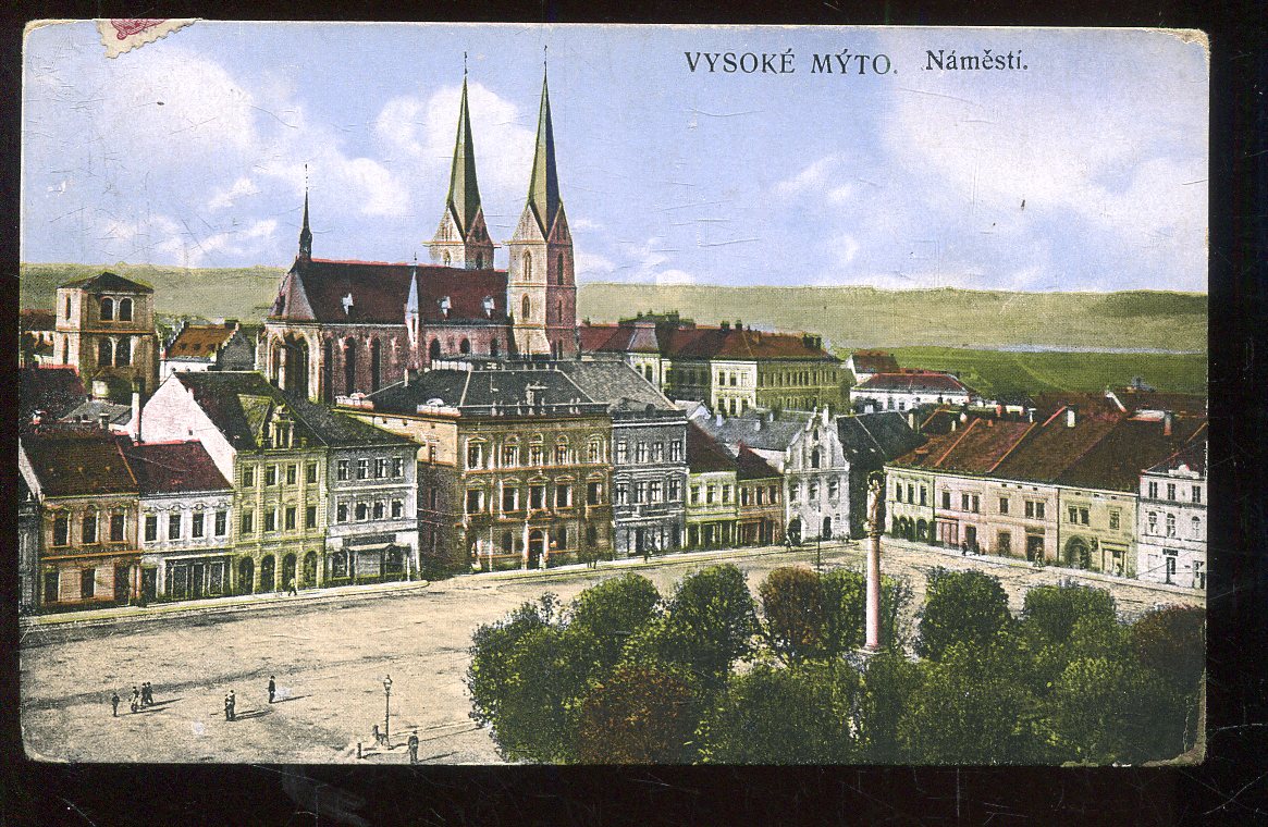 Stará pohlednice, prošlá se zn. (malý formát, cca 9 x 14 cm ).