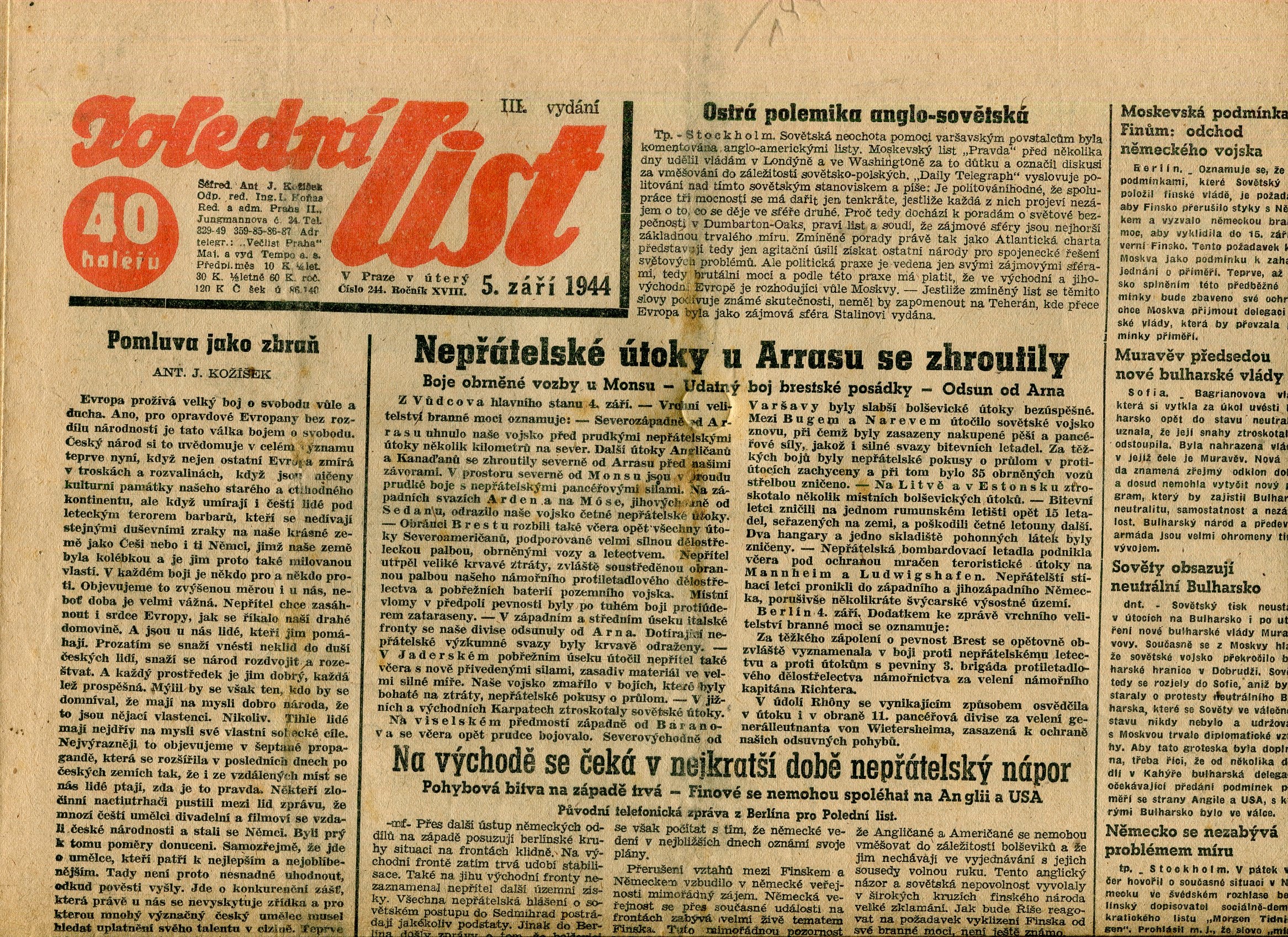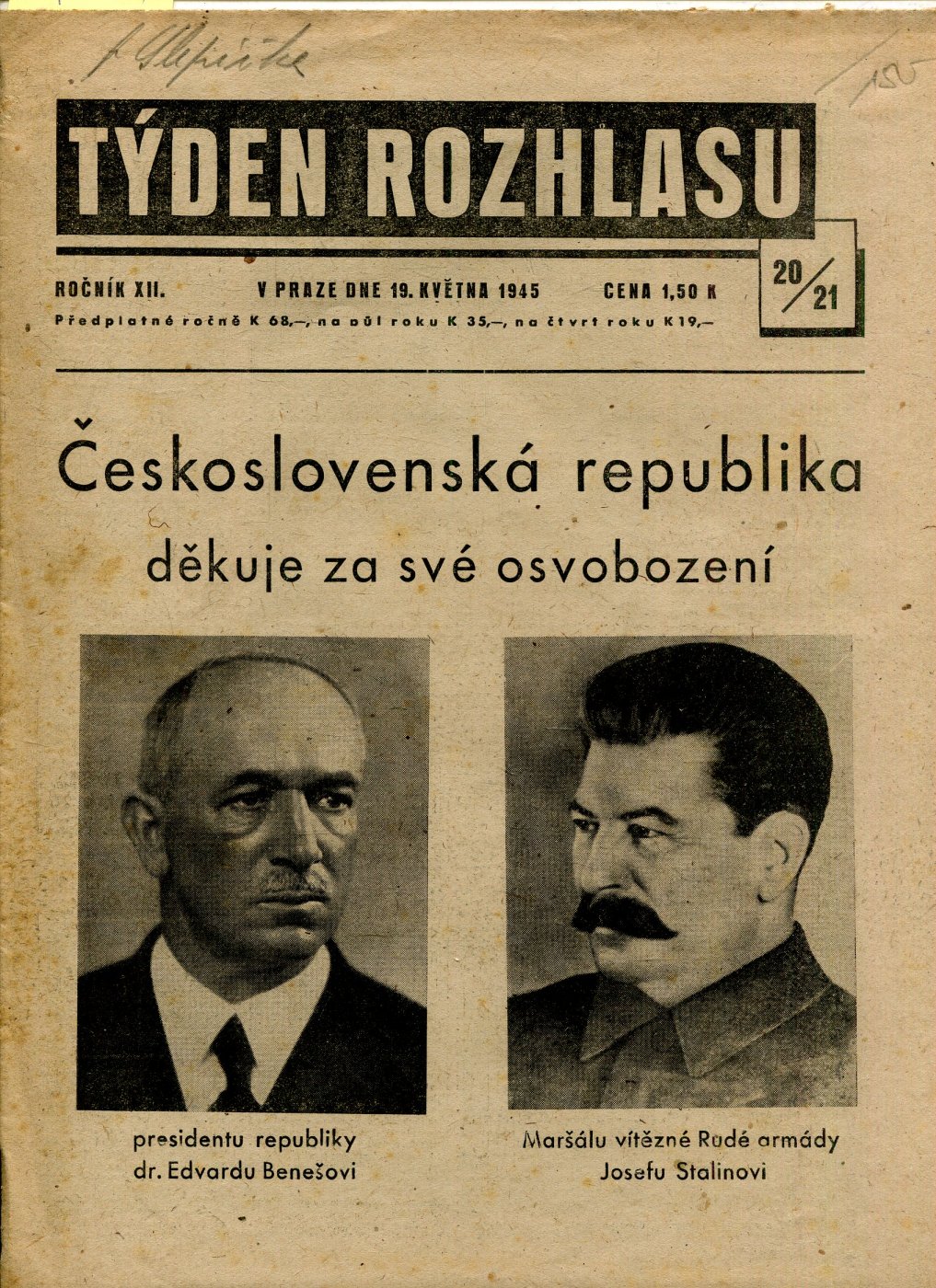 Velmi slušný stav, odřená obálka, hřbet natržený, mírně uvolněná vazba.