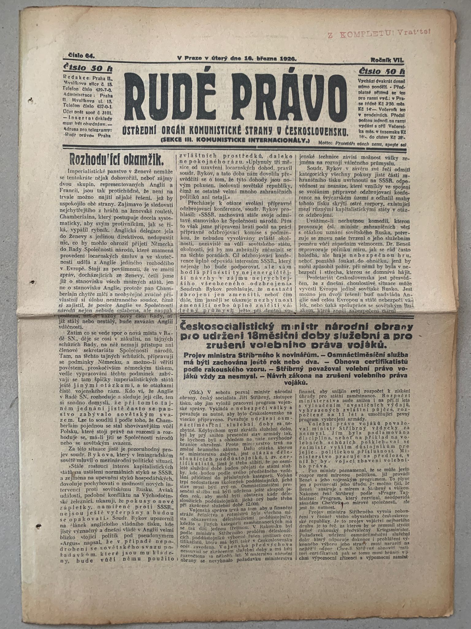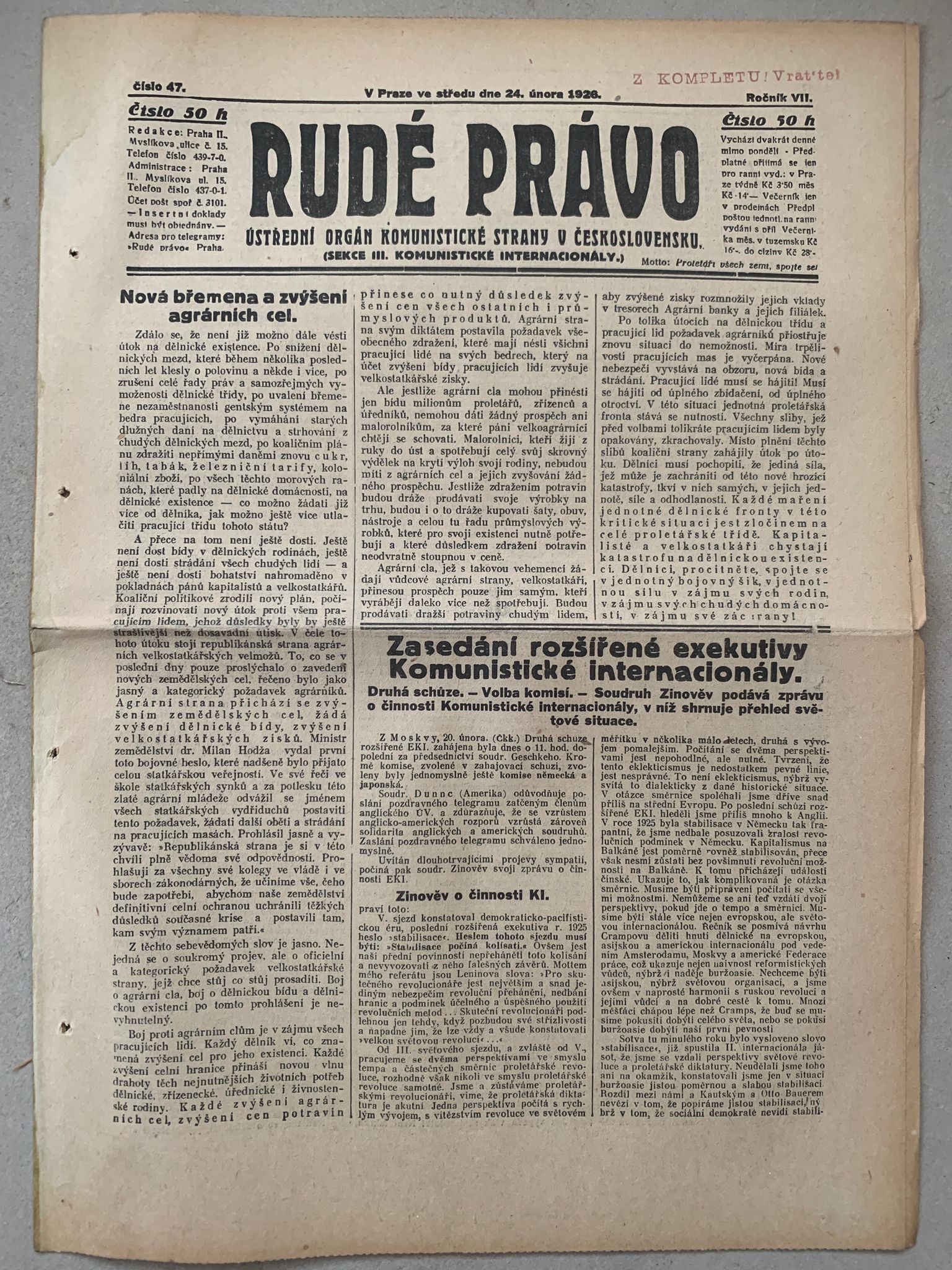 Staré noviny, volné složky, formát A3, přeloženo na A4. Stran 14