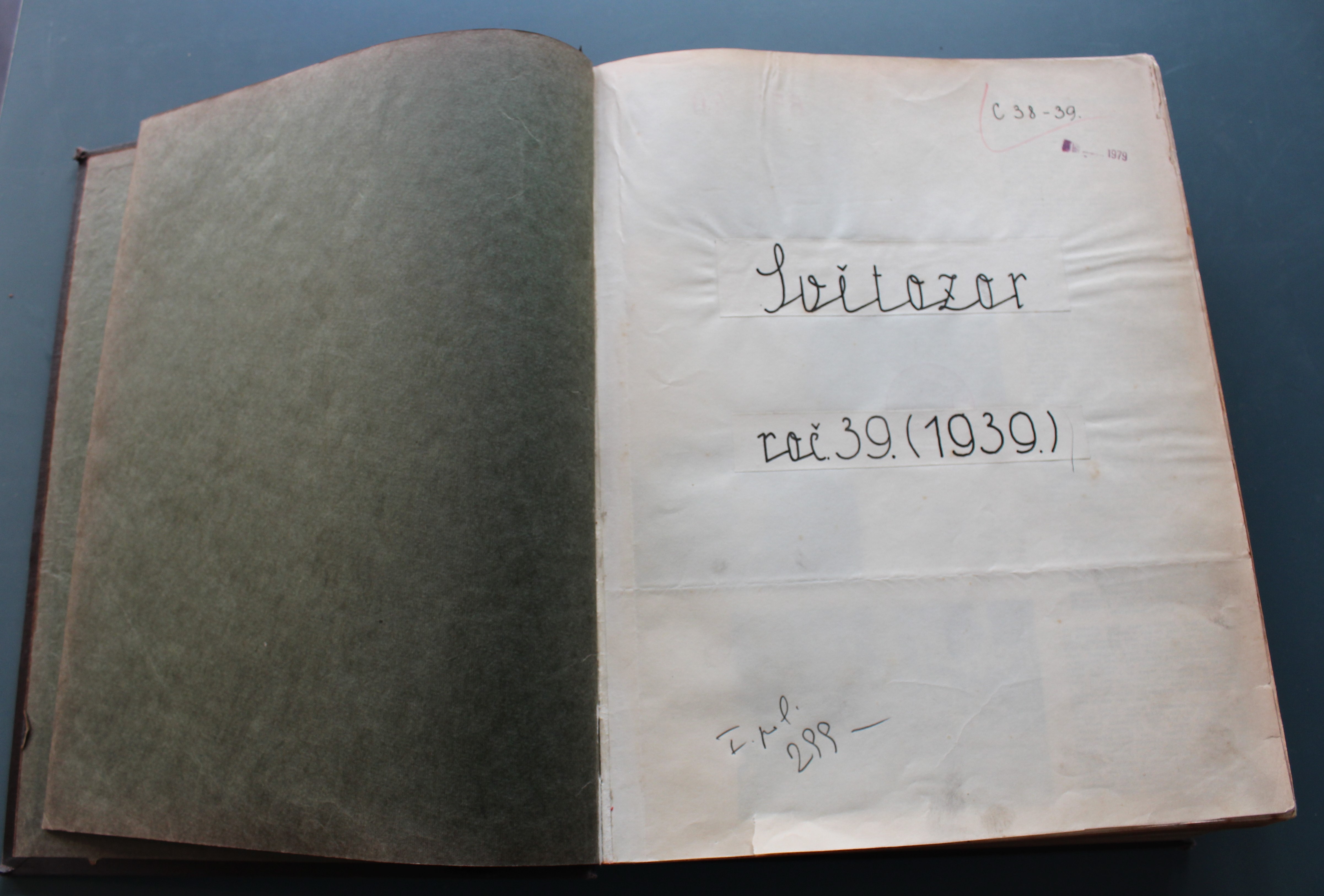 Slušný stav, přední strana obálky chybí, skvrna od polití, hřbet zpevněný páskou.