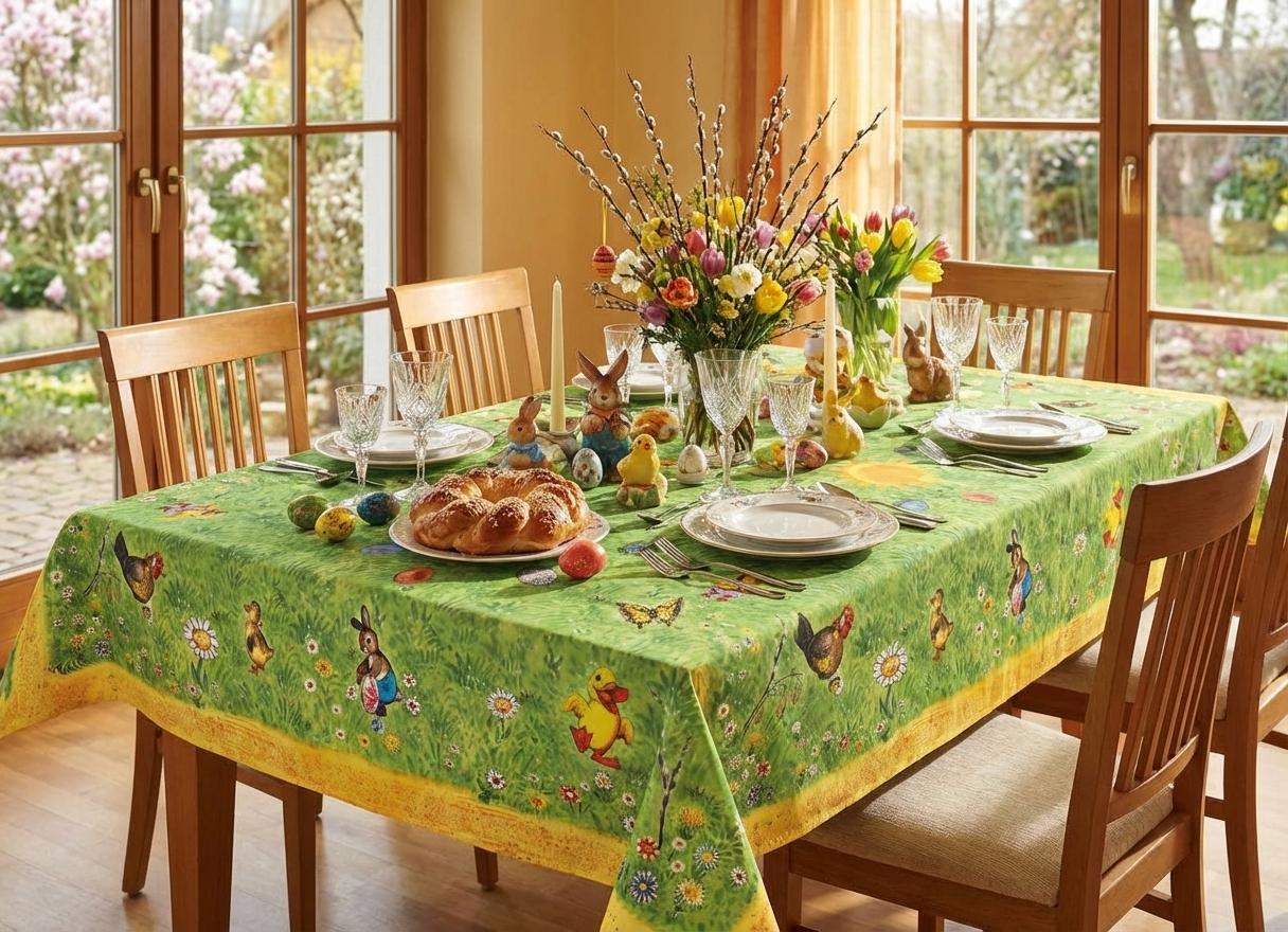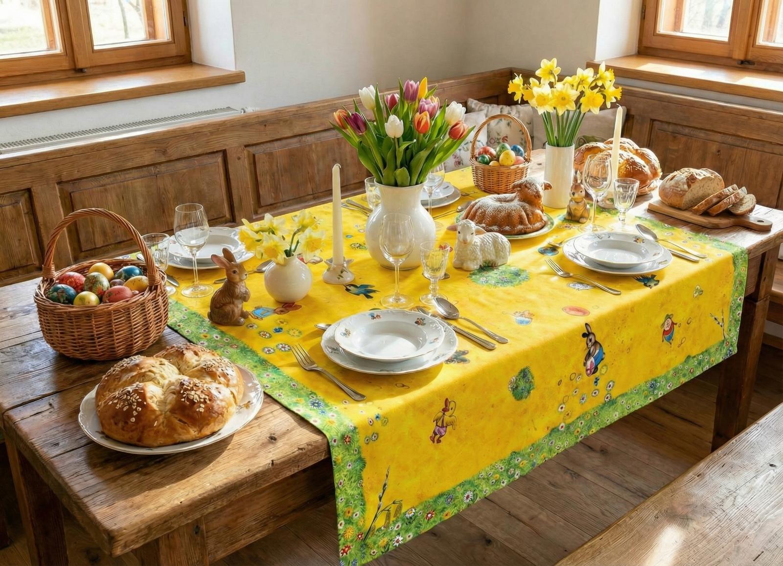 Velikonoční ubrus s ilustracemi z dětské knihy Velikonoční pohádka od&..
