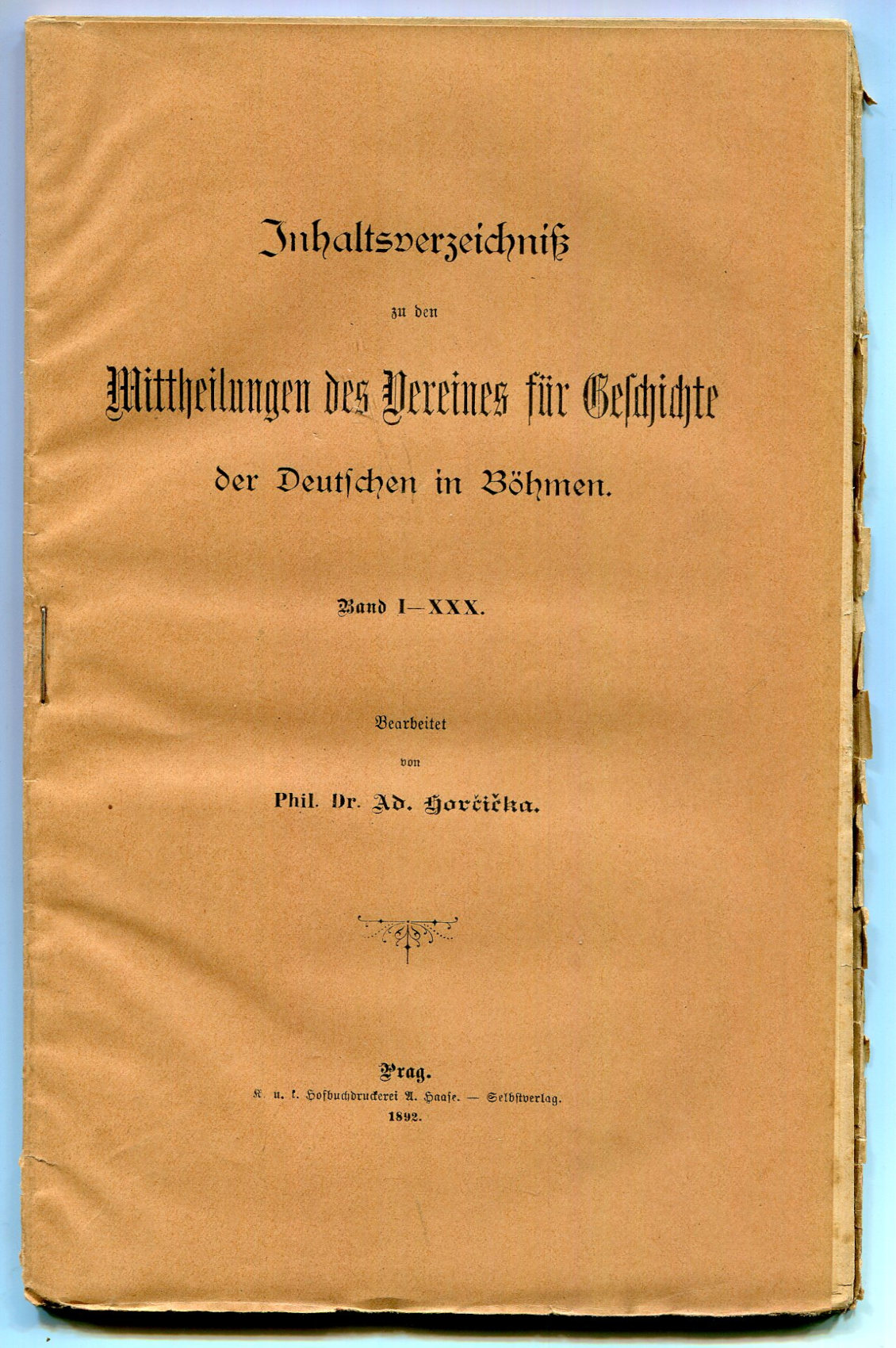 Prag: Selbstverlag des Vereines – Druck bei k. k. Hofdruckerei A. Haase 1892.