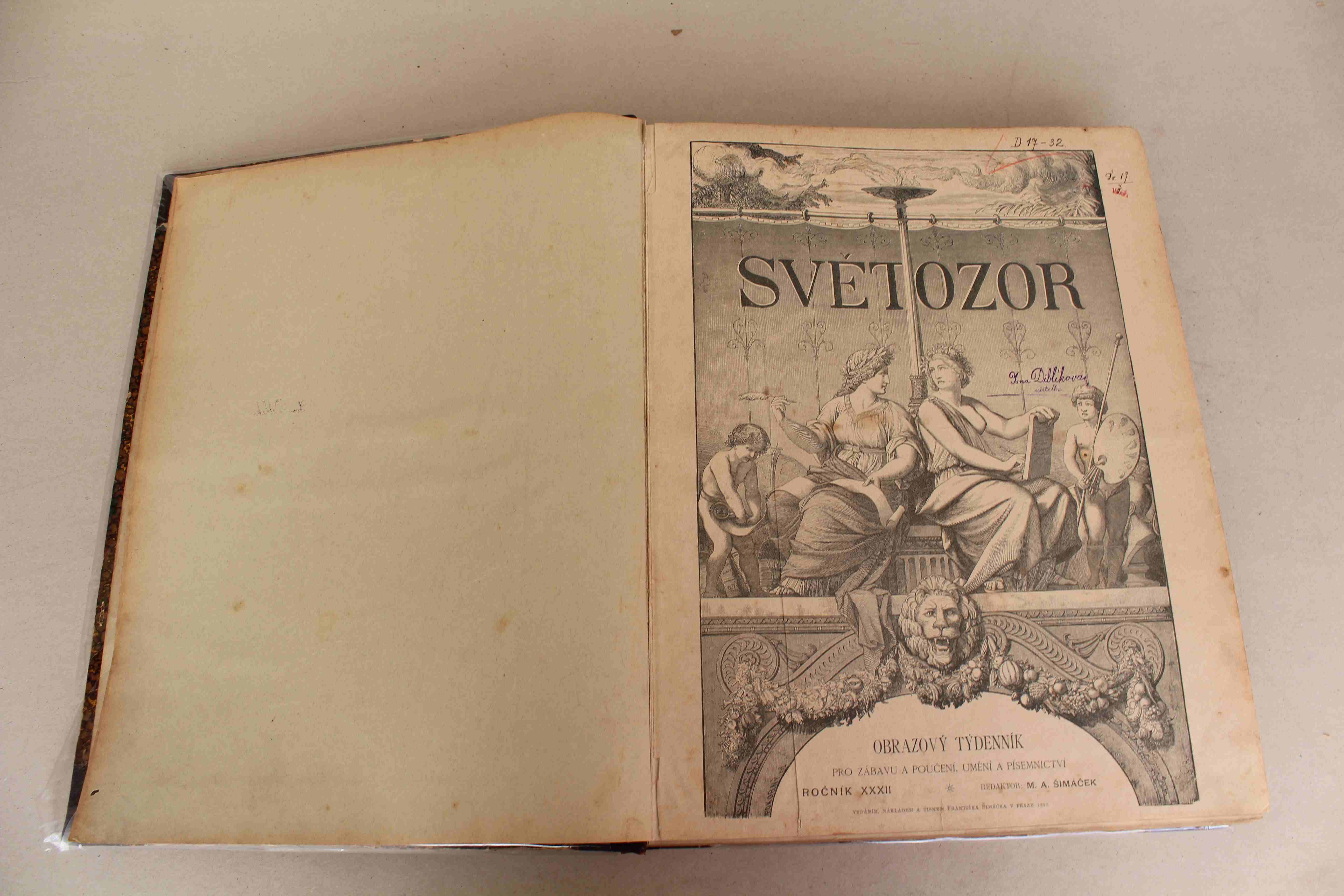 Velmi dobrý stav. desky jsou lehce zašpiněné. Na předsádce, na titulní straně a na dalších stranách jsou razítka z knihovny.