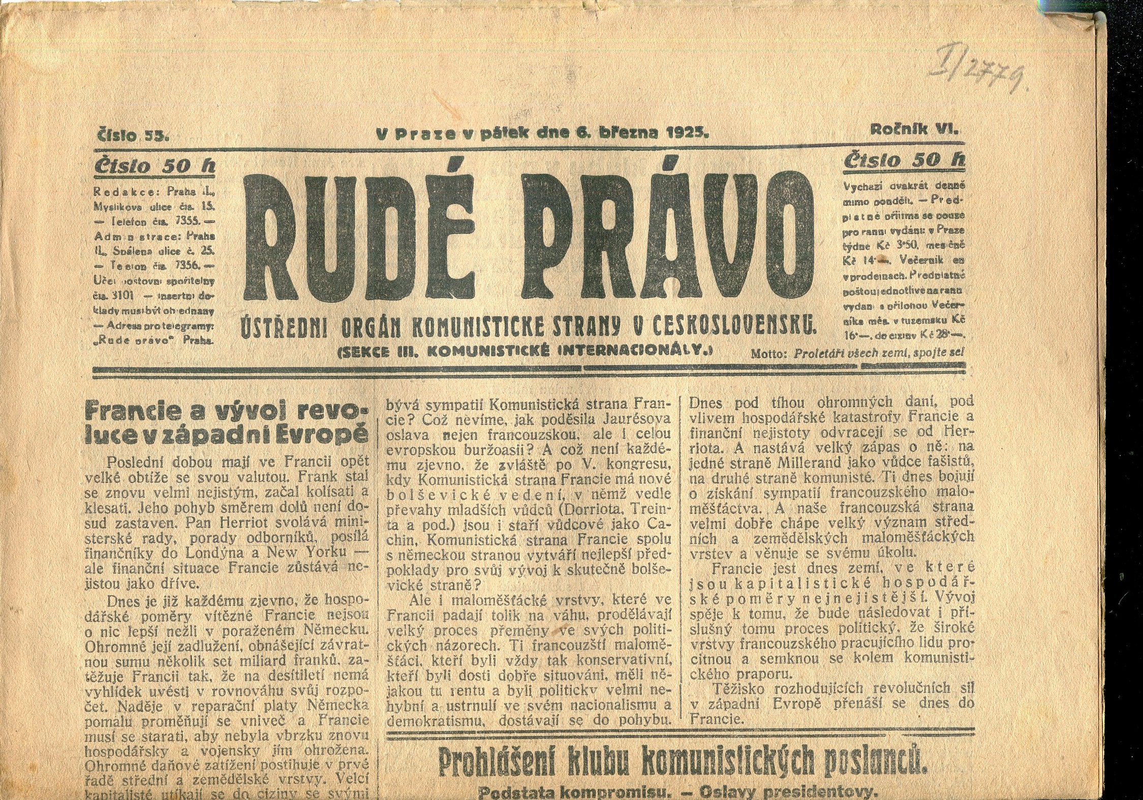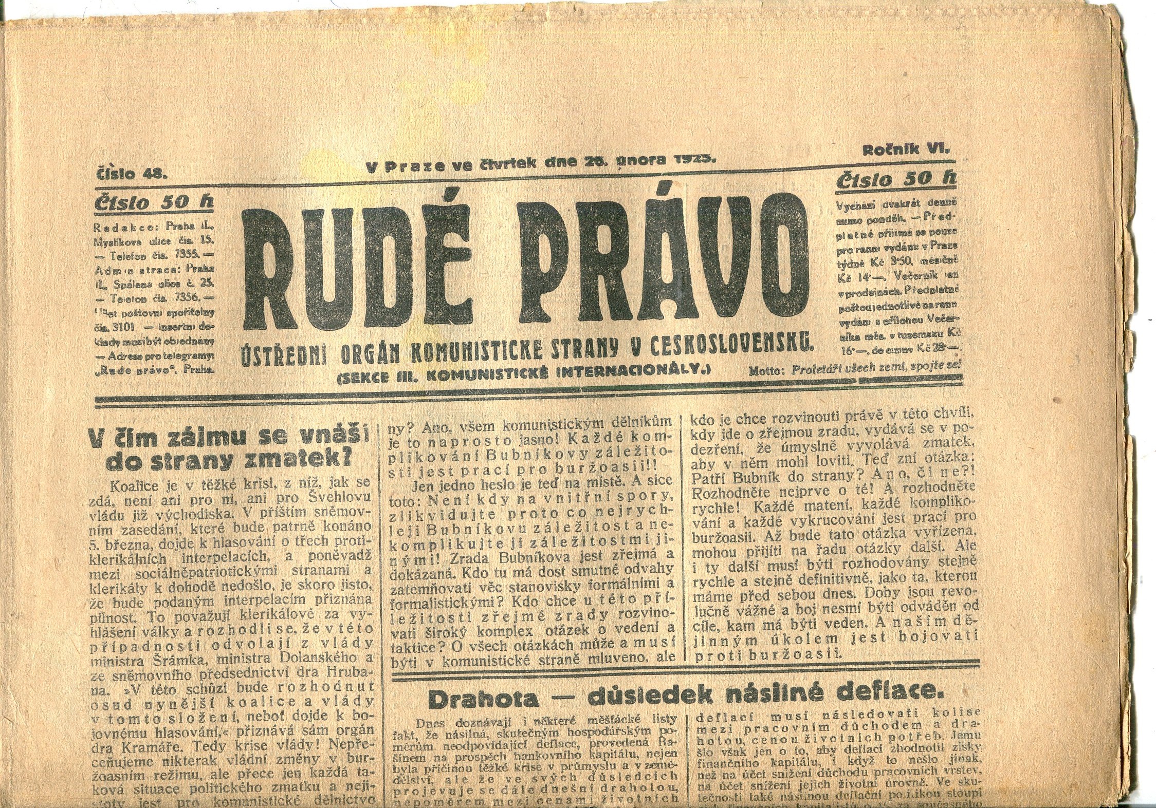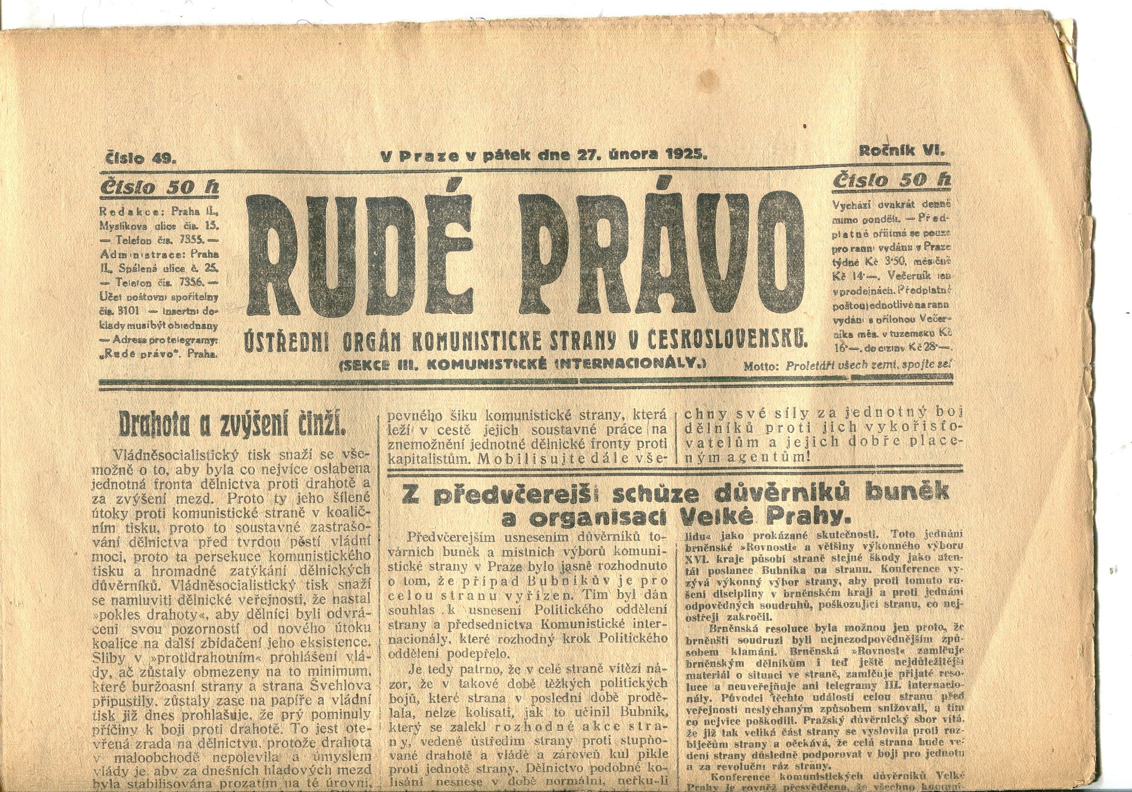 Praha, Československá strana komunistická 1922-1923.