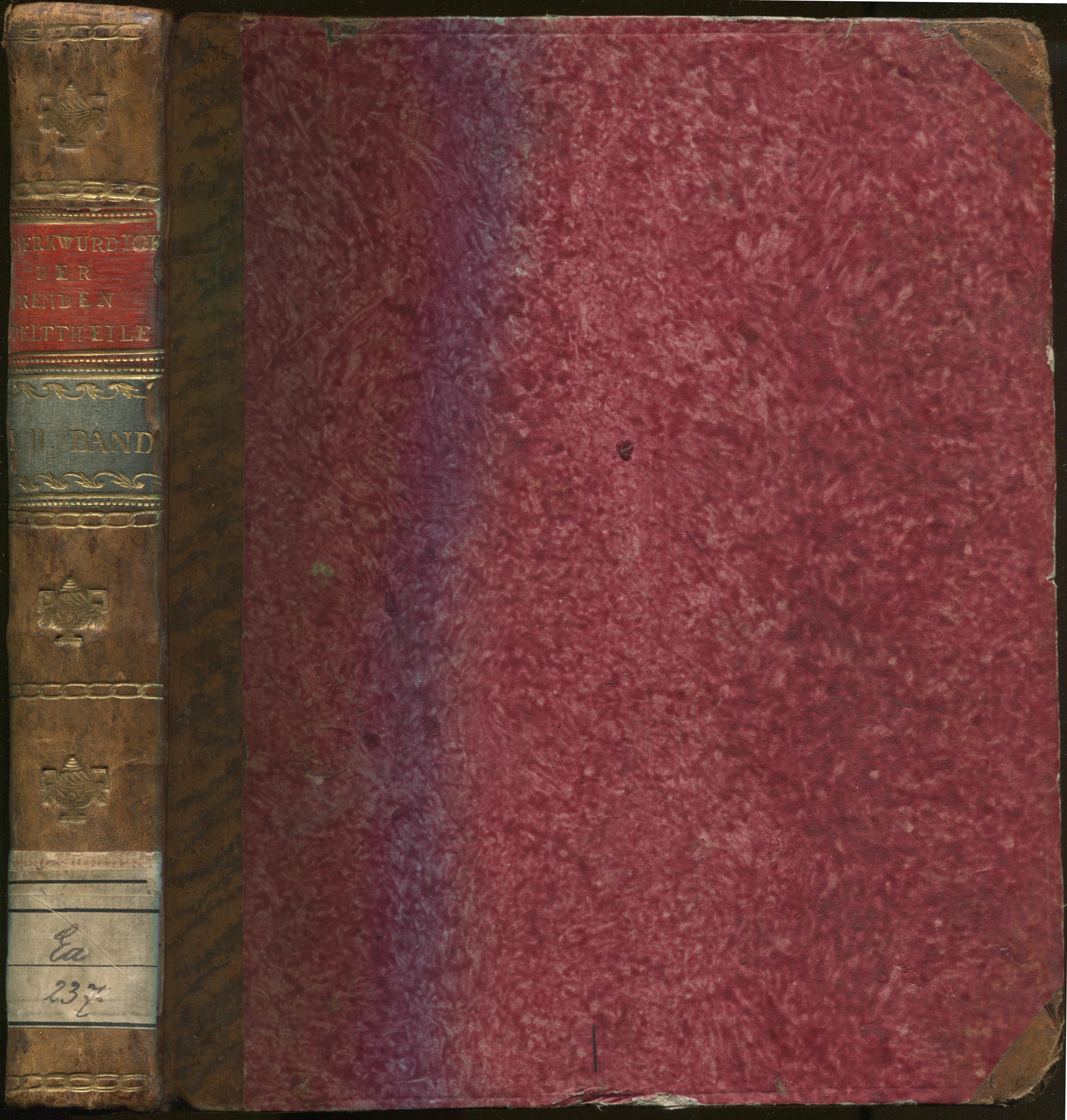 okraje desek a rohy odřené, ohnuté rohy, razítko soukr. knihovny na Deckelränder und -Ecken etwas berieben, Einband berieben, bestoßen, Ecken verbogen; Stempel einer Privat-Bibl. auf der Titelblattrüc