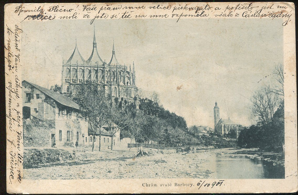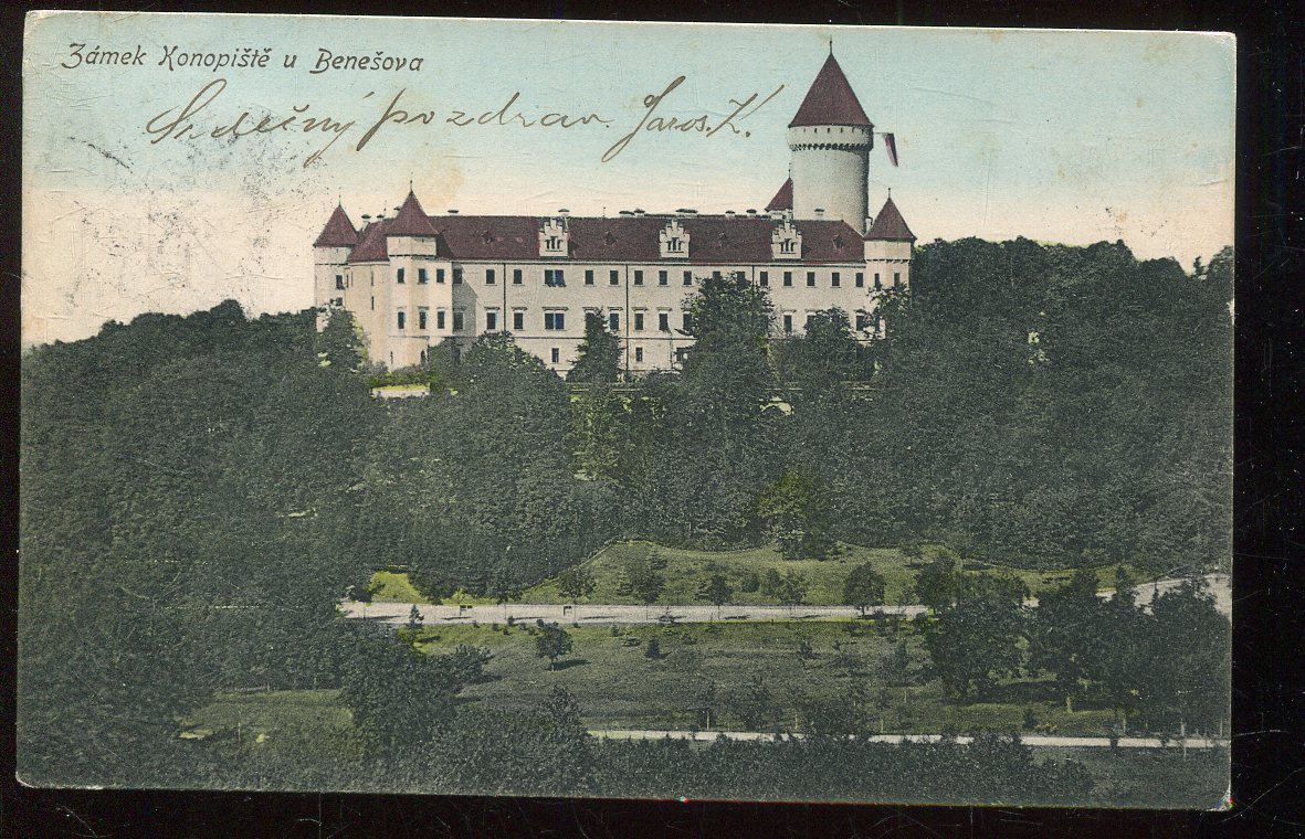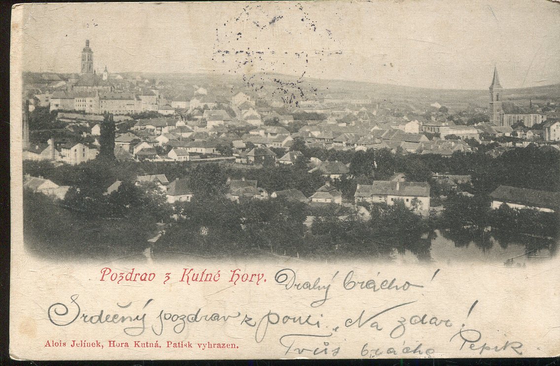 Stará pohlednice, prošlá se zn. (malý formát, cca 9 x 14 cm ).