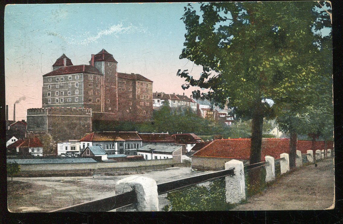 Stará pohlednice, prošlá se zn.(malý formát, cca 9 x 14 cm ).