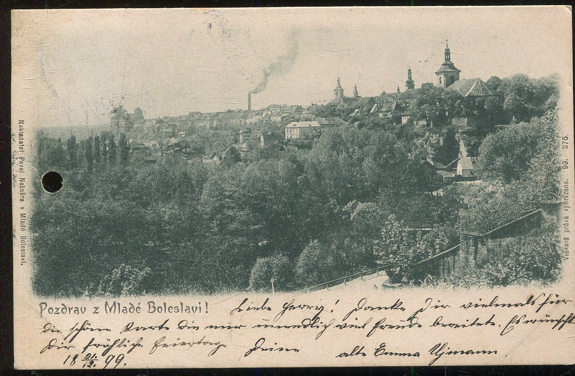 Stará pohlednice, prošlá se zn. (malý formát, cca 9 x 14 cm ).