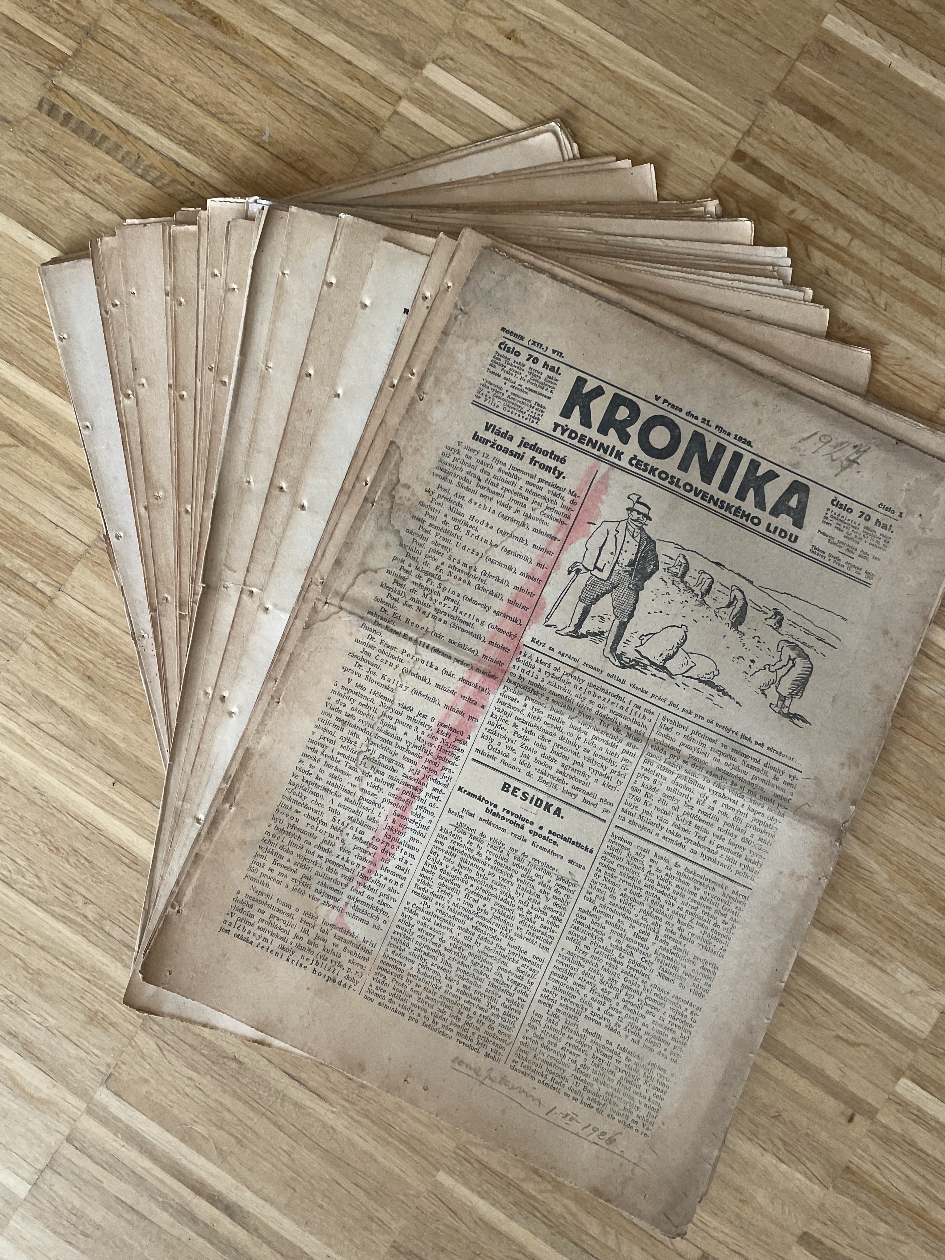 Přehnuté složky, každé číslo cca 6 stran, rozměry cca: 28 x 38,5 cm.