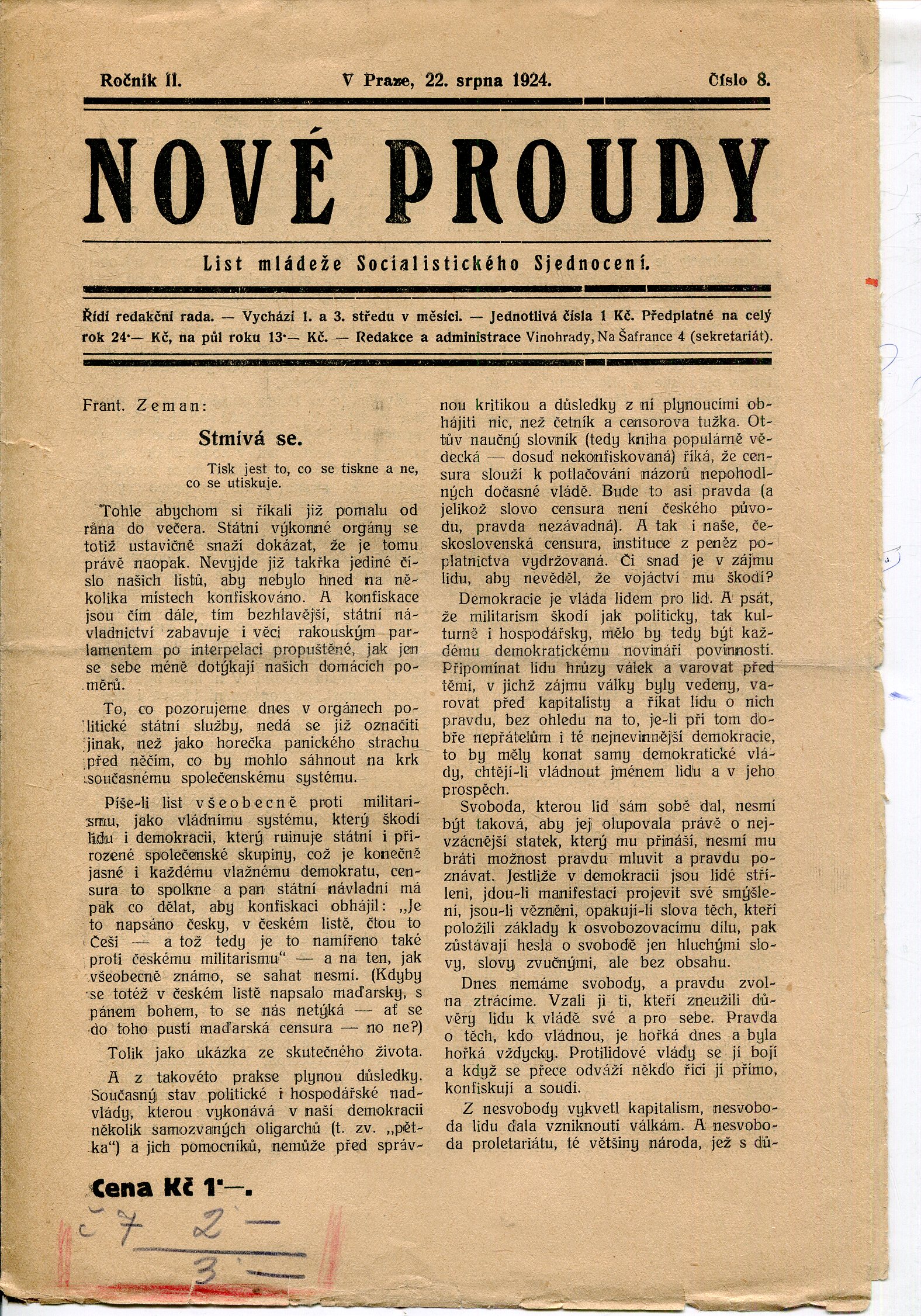 Přehnuté složky, rozměry cca 19,5 x 28 cm. Stran 8