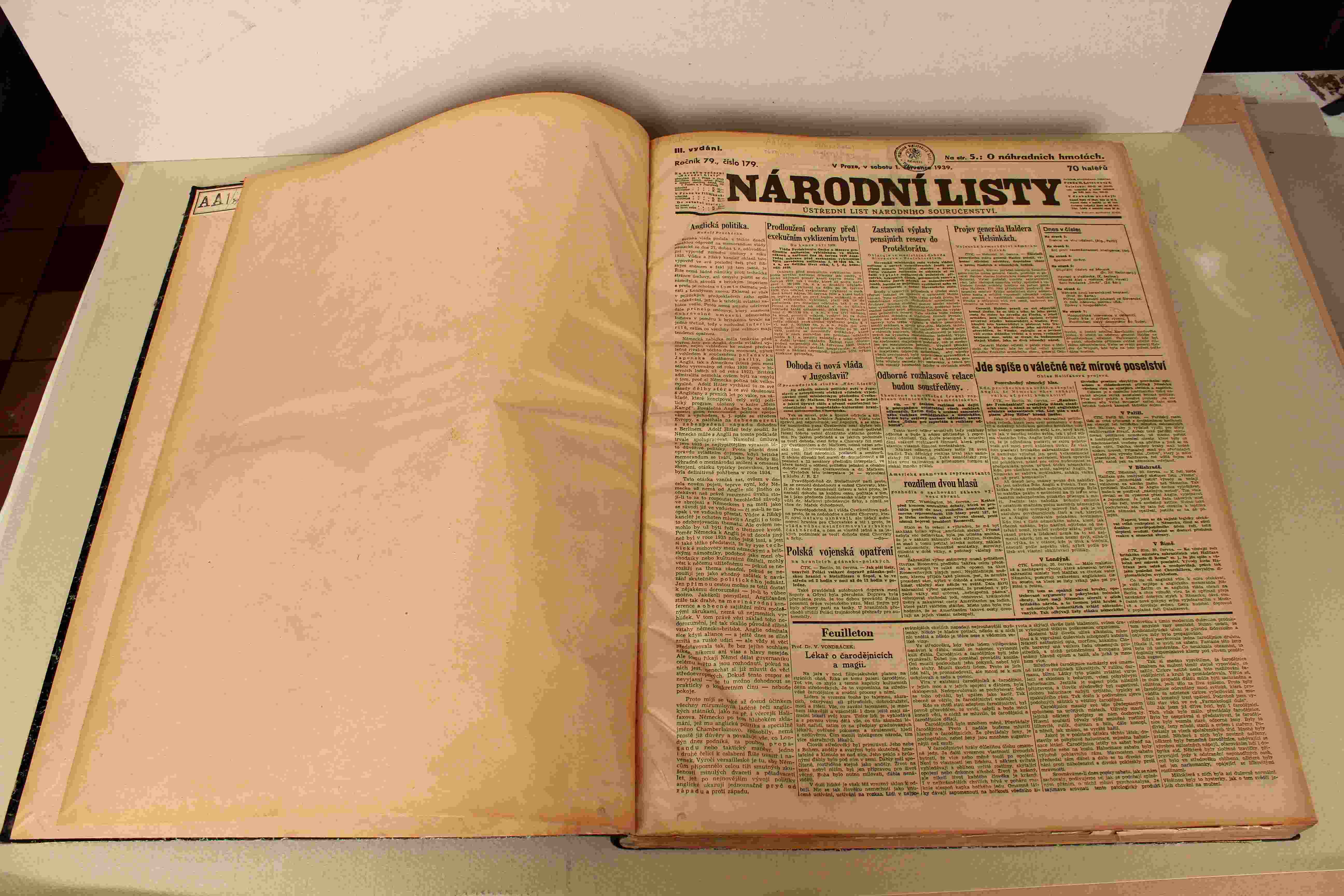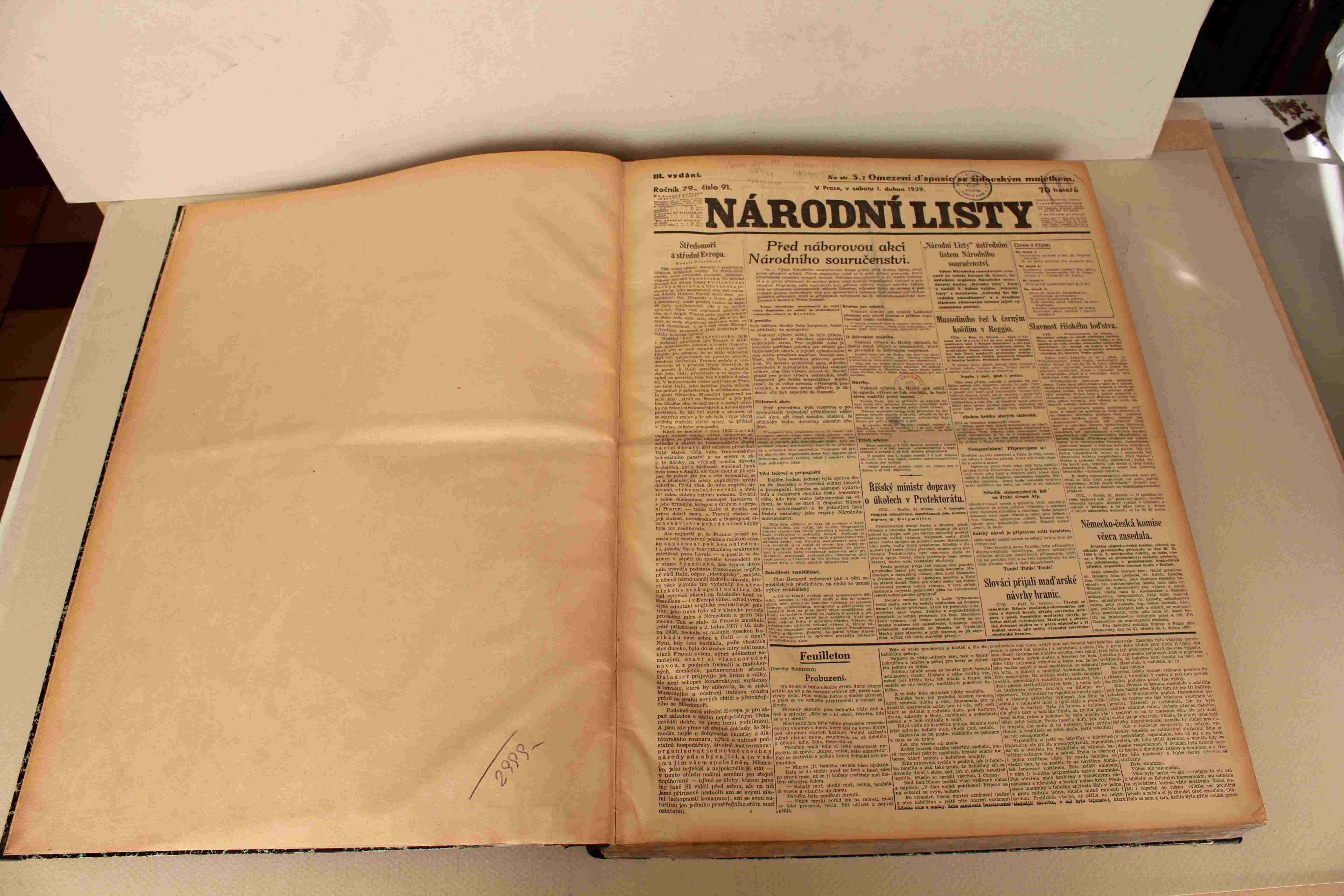 Uspokojivý stav; desky a plátno opotřebované a zašlé, na zadní desce je nalepen štítek, předsádky s razítky a signaturou, na původní obálce a některých stránkách jsou další razítka knihoven či signatu