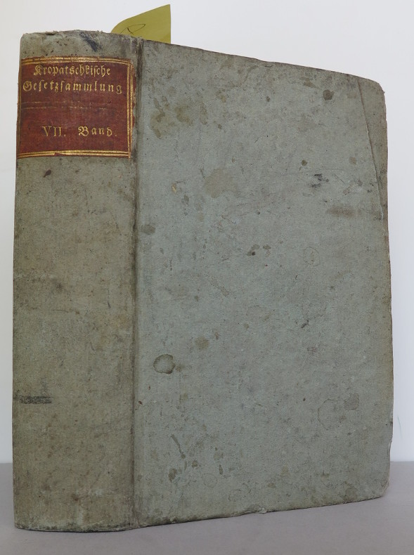 Dobrý stav; desky jen mírně opotřebované, na zadní desce je nalepen štítek, předsádky s razítky a signaturou, na obálce a některých stránkách jsou další razítka knihoven či poznámka/signatura psaná pe