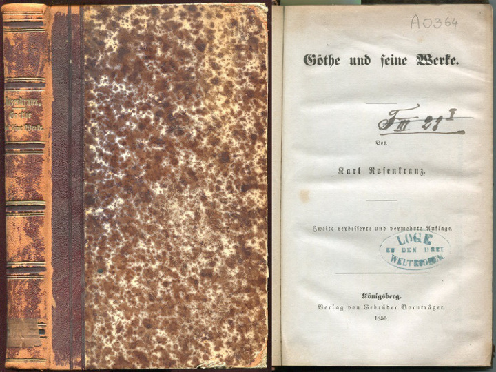 Königsberg: Verlag von Gebrüder Bornträger 1856, polokožená vazba s titulem na hřbetu, mramorované desky a ořízka, XX+475 stran, 8° (13,5 x 21 cm)
