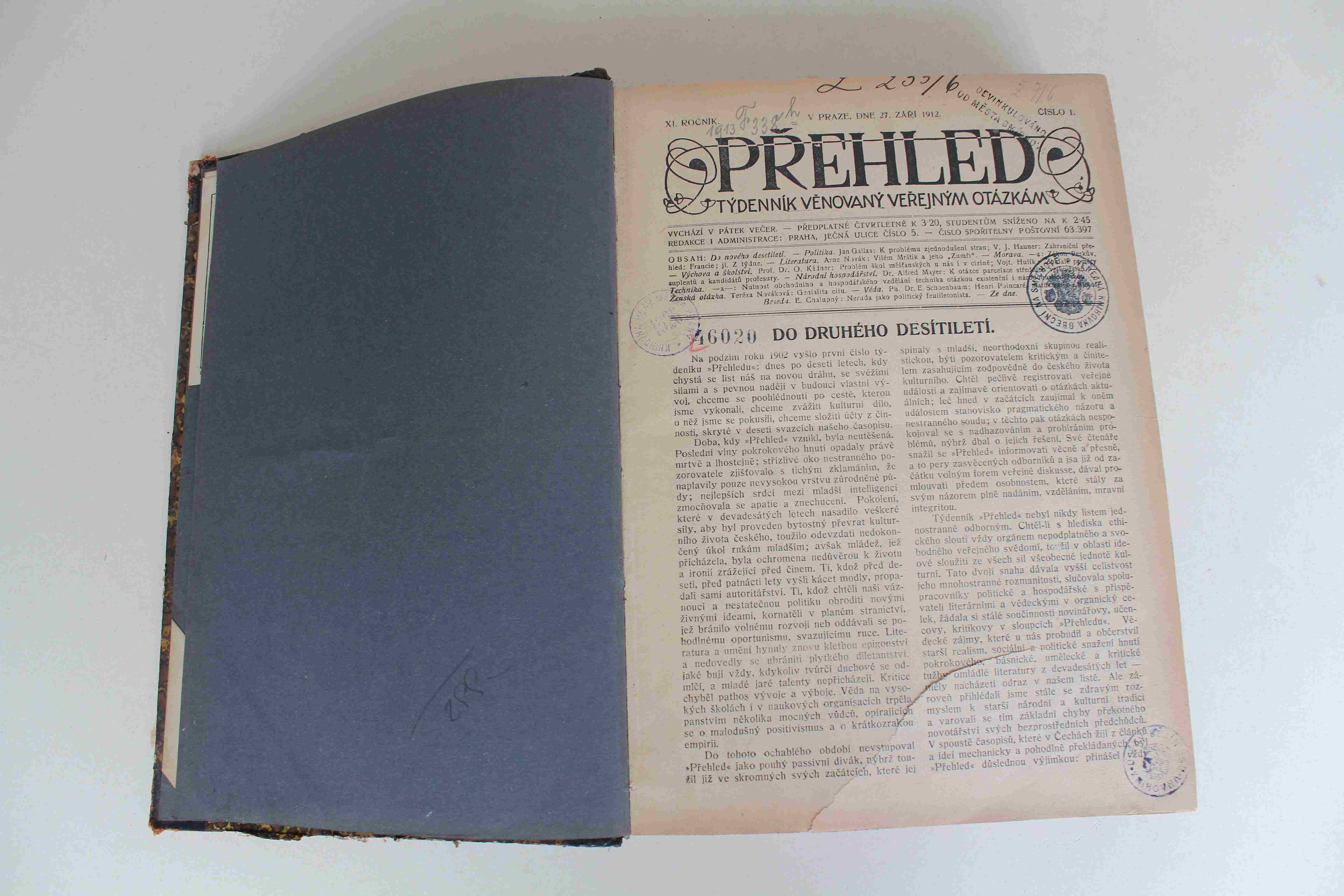 Dobrý stav; desky silněji opotřebované a vyšisované, rohy desek naražené, předsádky ohmatané, s razítky a signaturou, na některých stránkách a obálkách jsou razítka či poznámka psaná perem, některé li