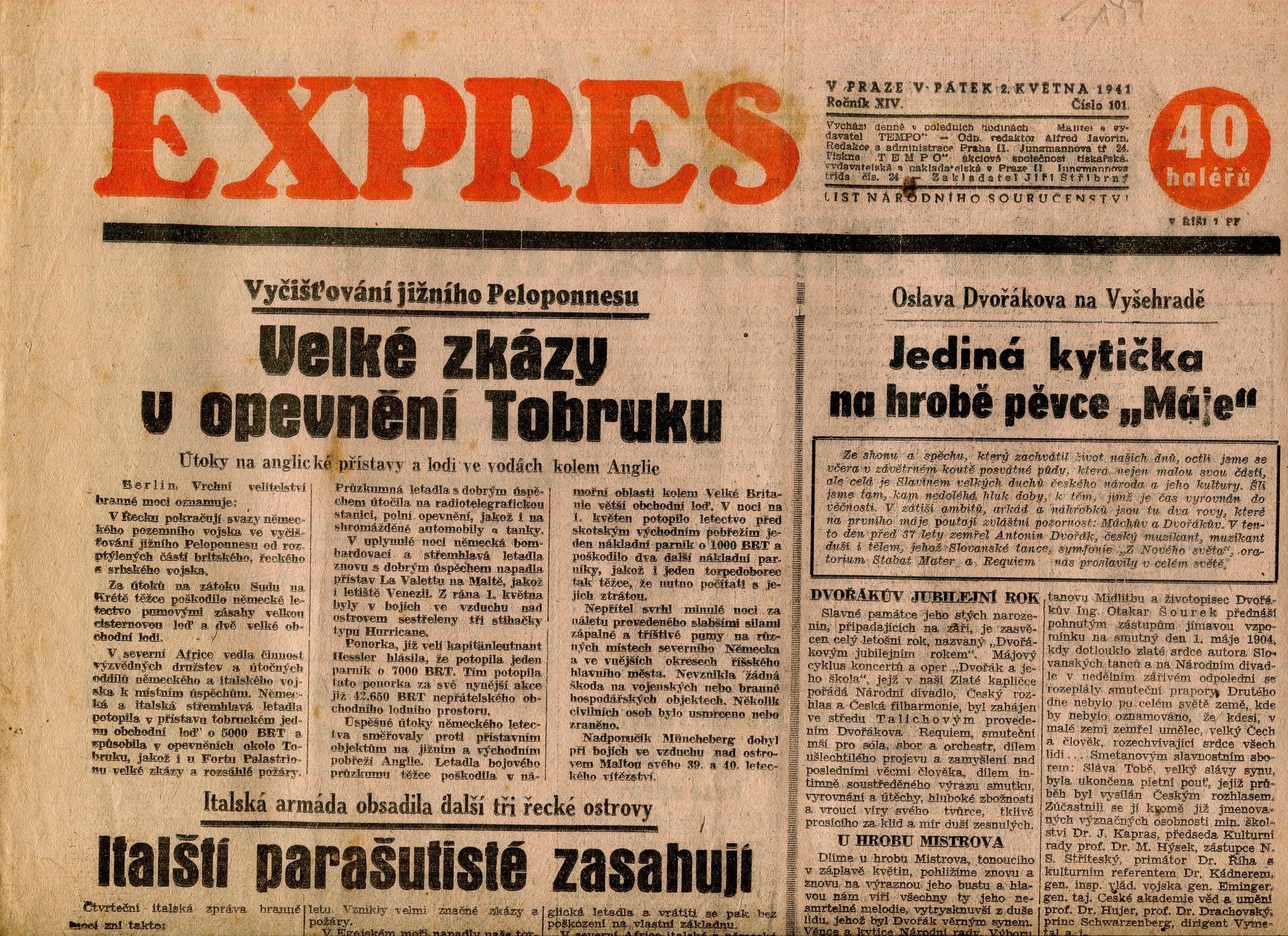 Stav velmi dobrý, noviny jsou lehce zažloutlé a v horní části natržené