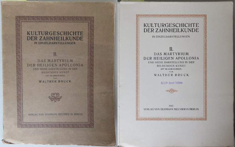 Dobrý stav; desky trochu opotřebované a vybledlé, na zadní desce je nalepen štítek, na předsádkách je signatura a pár razítek, další razítka jsou na obálce a několika stranách.