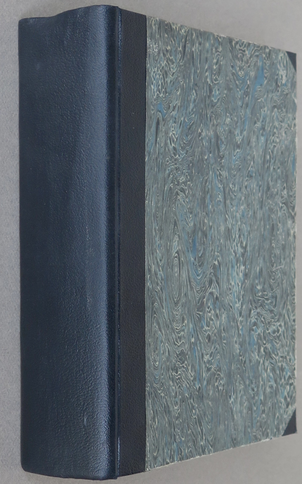 Dobrý stav; desky opotřebované, zadní deska s nalepeným štítkem, na přední předsádce razítka a poznámky knihovny, ořízka a stránky zažloutlé, pár listů s ohnutými rohy nebo malým natržením, spoj mezi