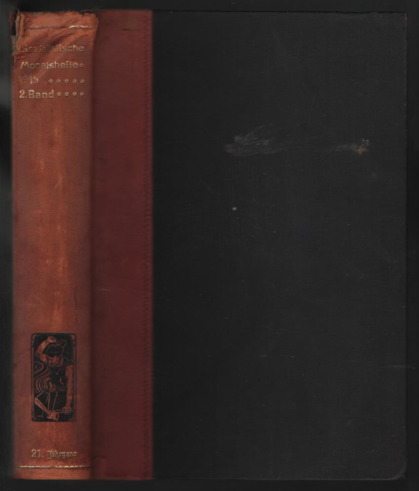 Berlin: Verlag der Sozialistischen Monatshefte 1915. Polokožená vazba se zlaceným titulem na hřbetu a barevnou ořízkou a předsádkou, XVI stran + strany 522-950 s barevnou mapou, 4° (16,5 x 24 cm)