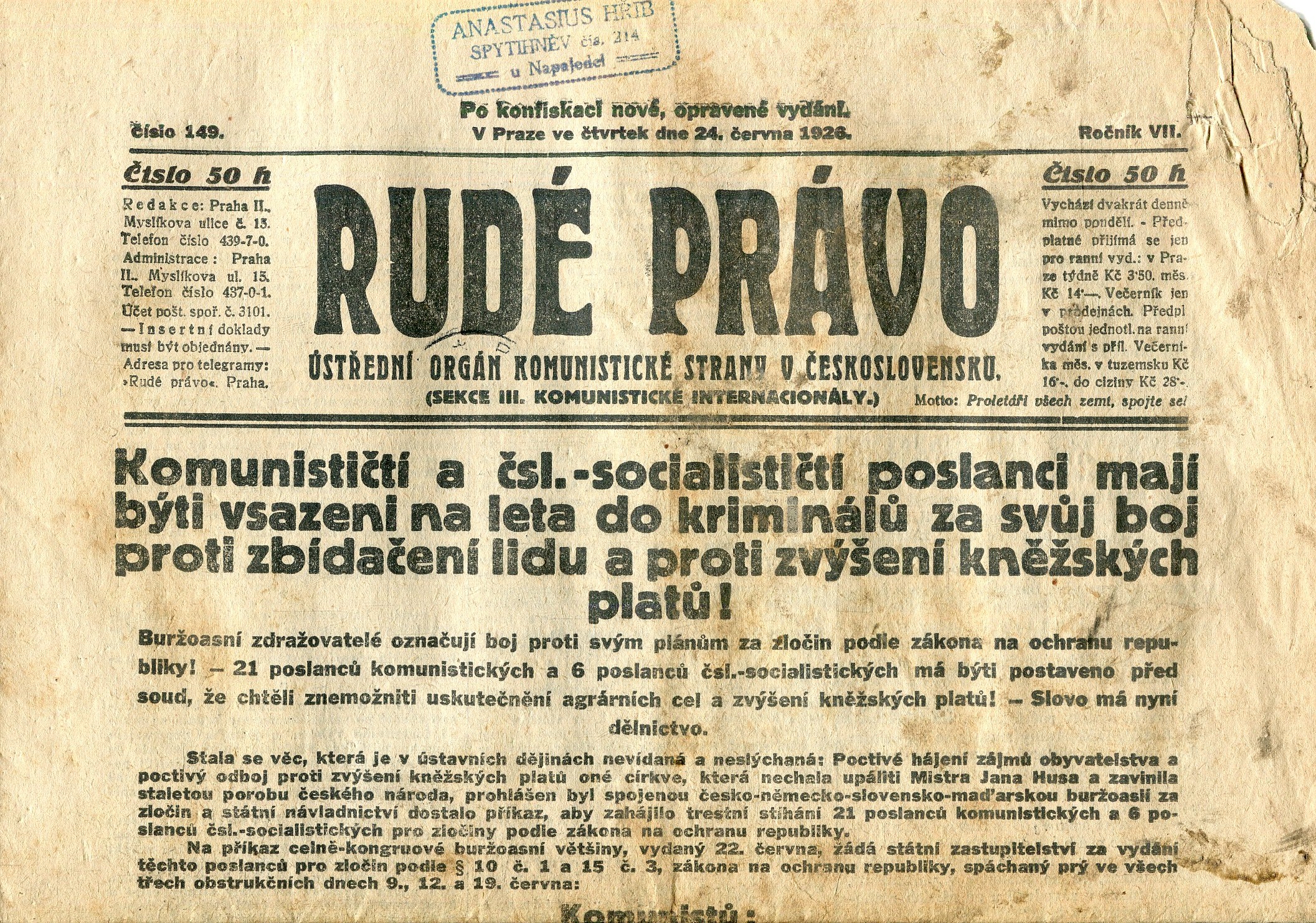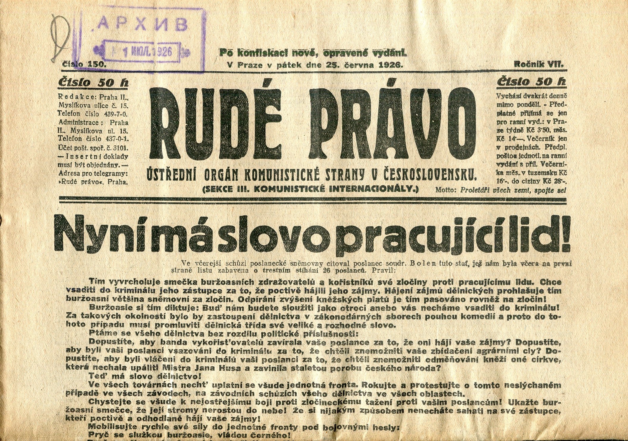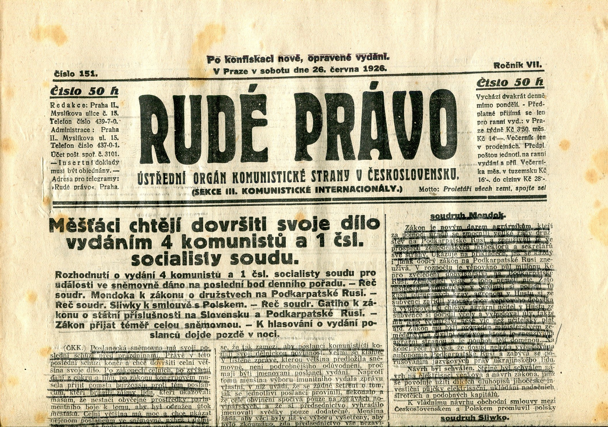 Stav dobrý, horní roh je s lehkou ztrátou, noviny ušpiněné