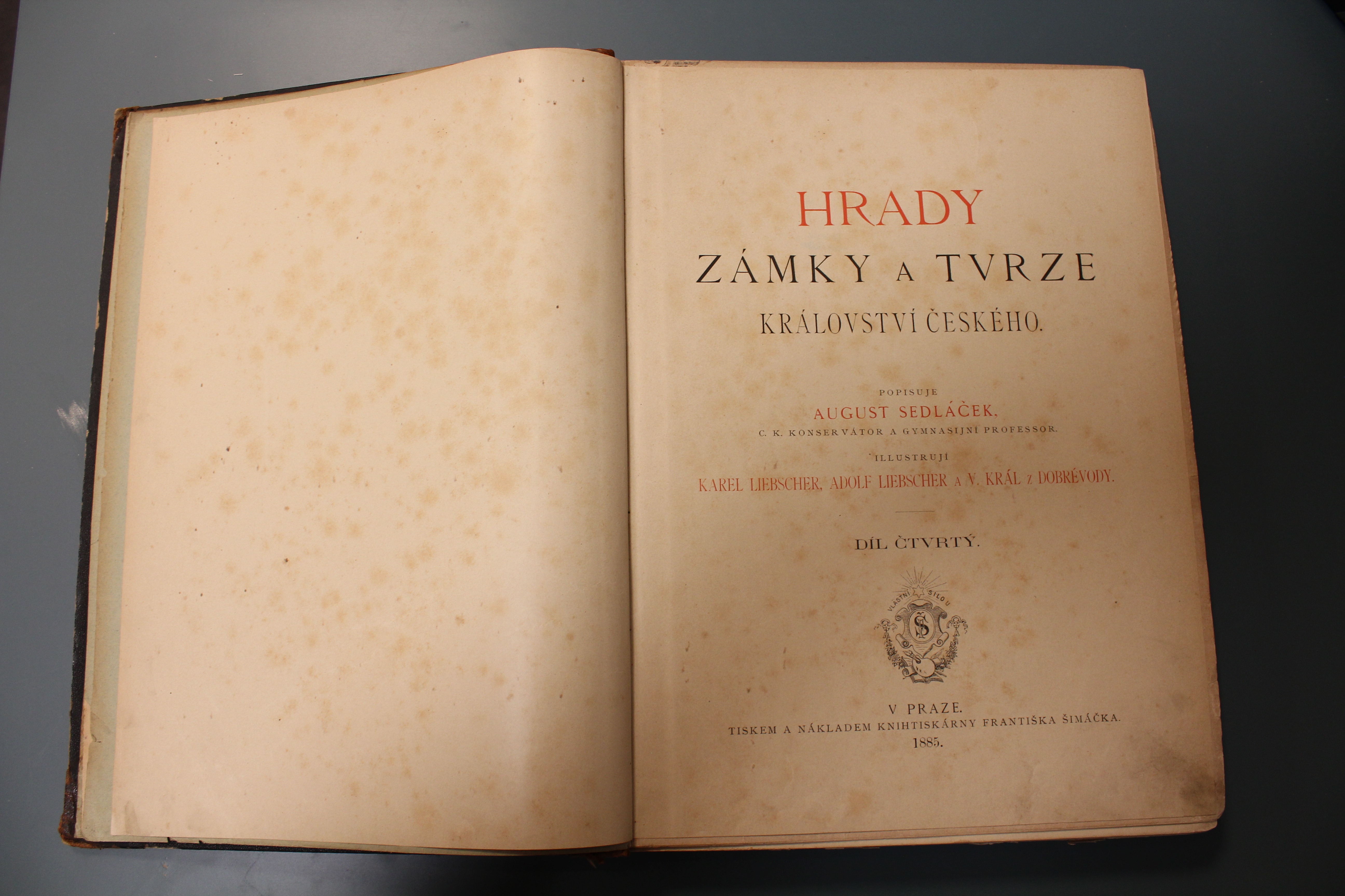 Velmi dobrý stav. Desky jsou lehce odřené. Na přídeští jsou záznamy a razítka z knihovny.