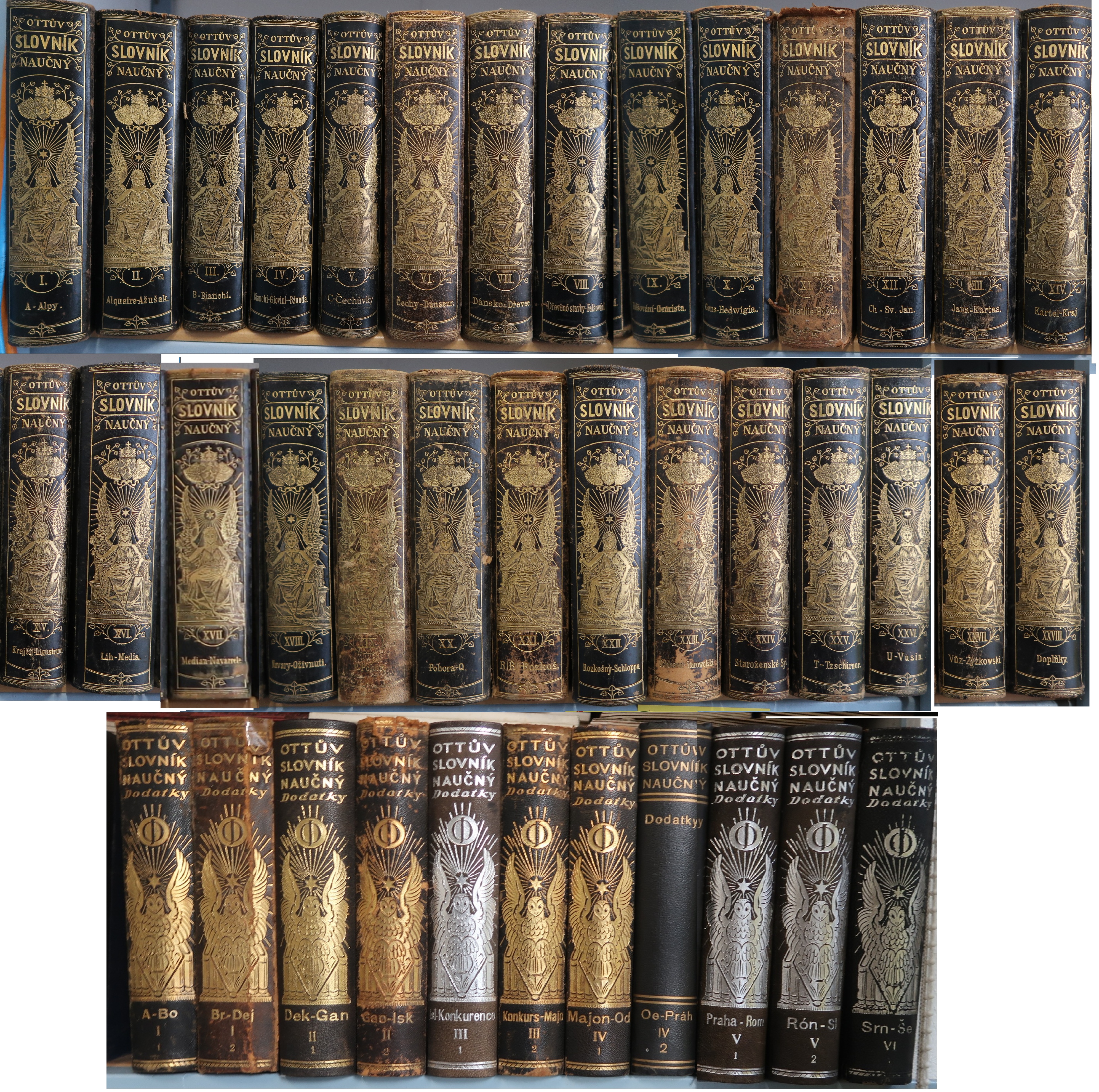 Ottův slovník naučný, základní řada 27 svazků zabírá všechna hesla od A do Ž.