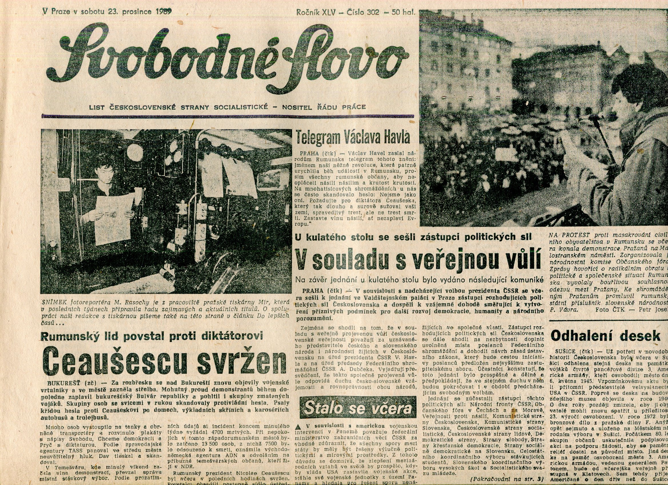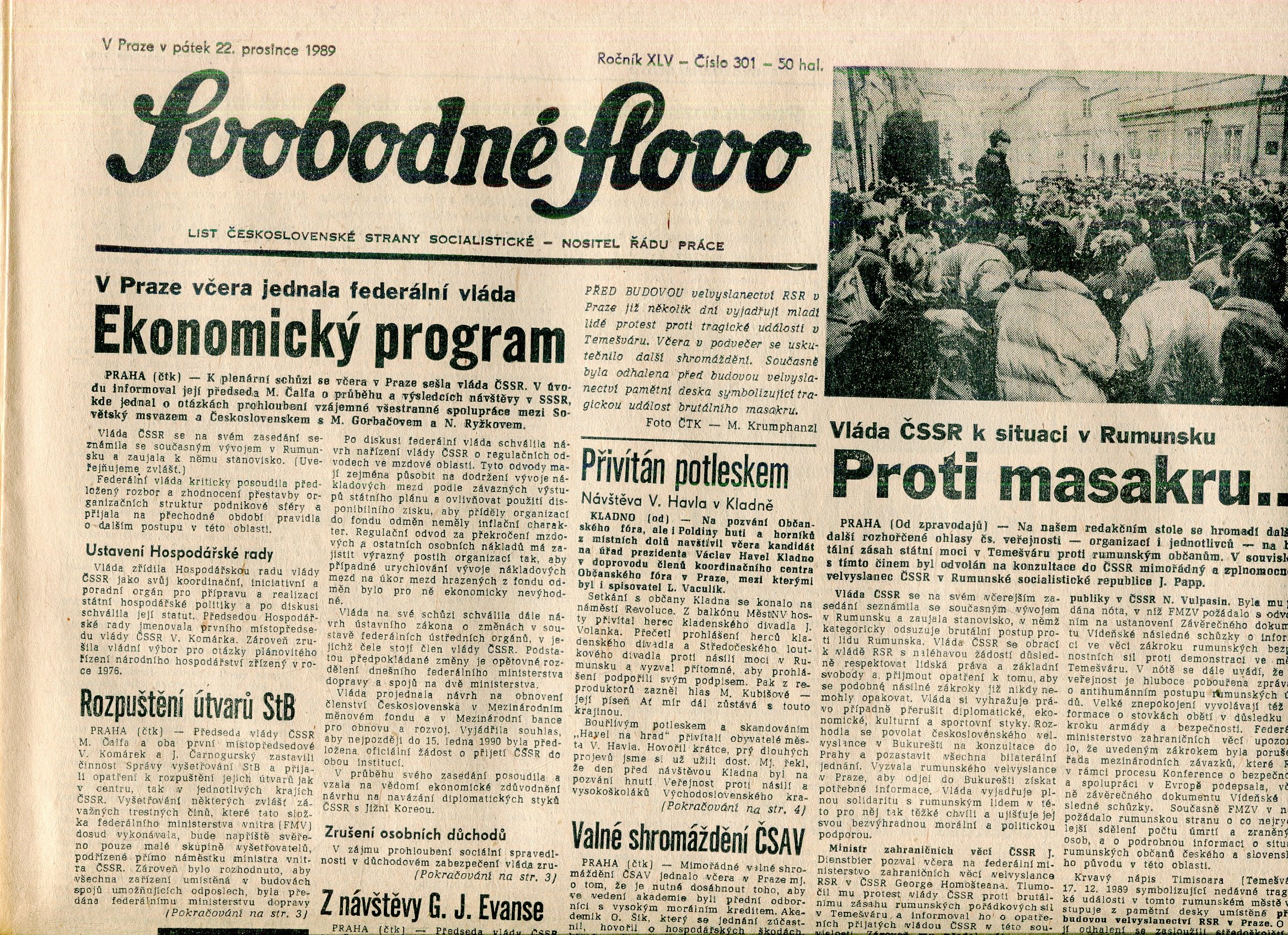 Velmi dobrý stav, noviny jsou v horní části lehce natržené