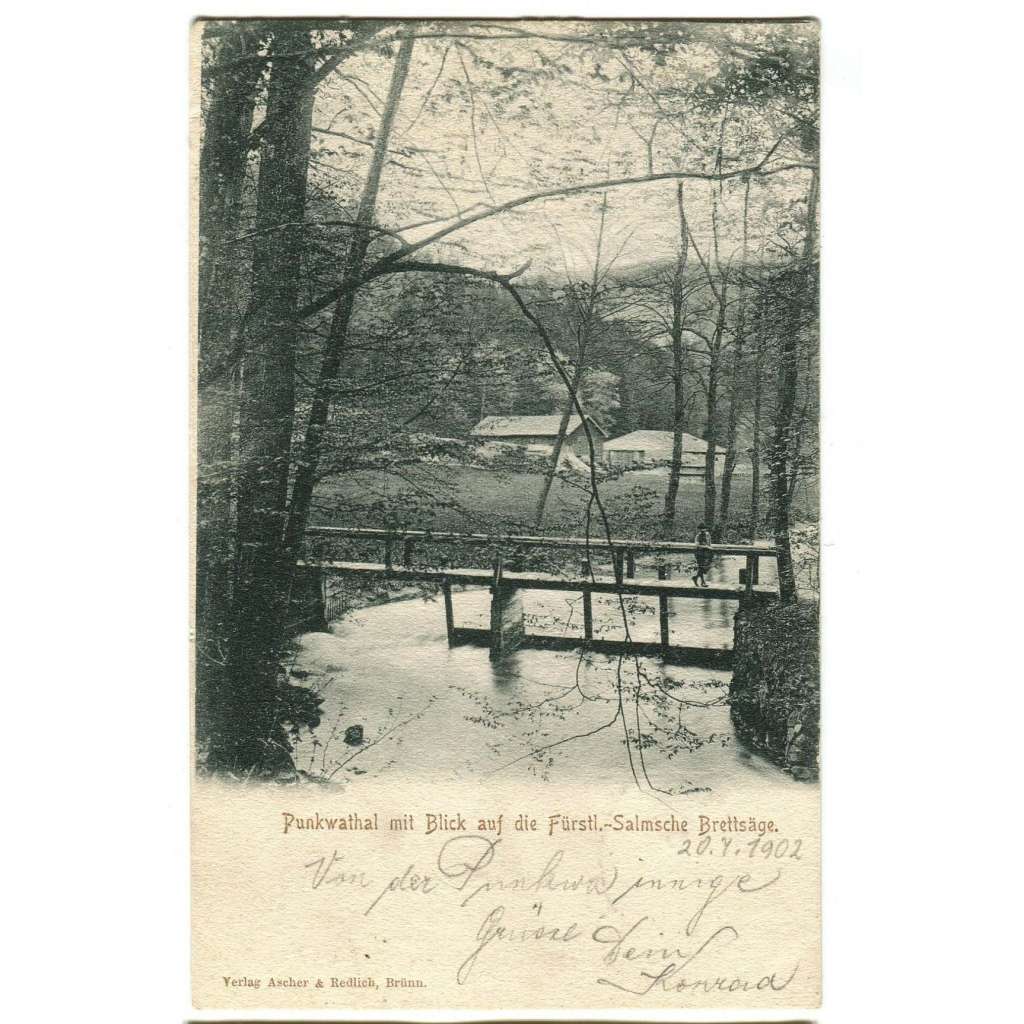Stará pohlednice, prošlá, se zn., malý formát (cca 9 x 14 cm). Náhled si zvětšíte kliknutím.