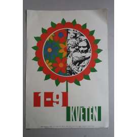 Starý propagační plakát určený k pověšení na nástěnku, měkký papír s barevným potiskem.