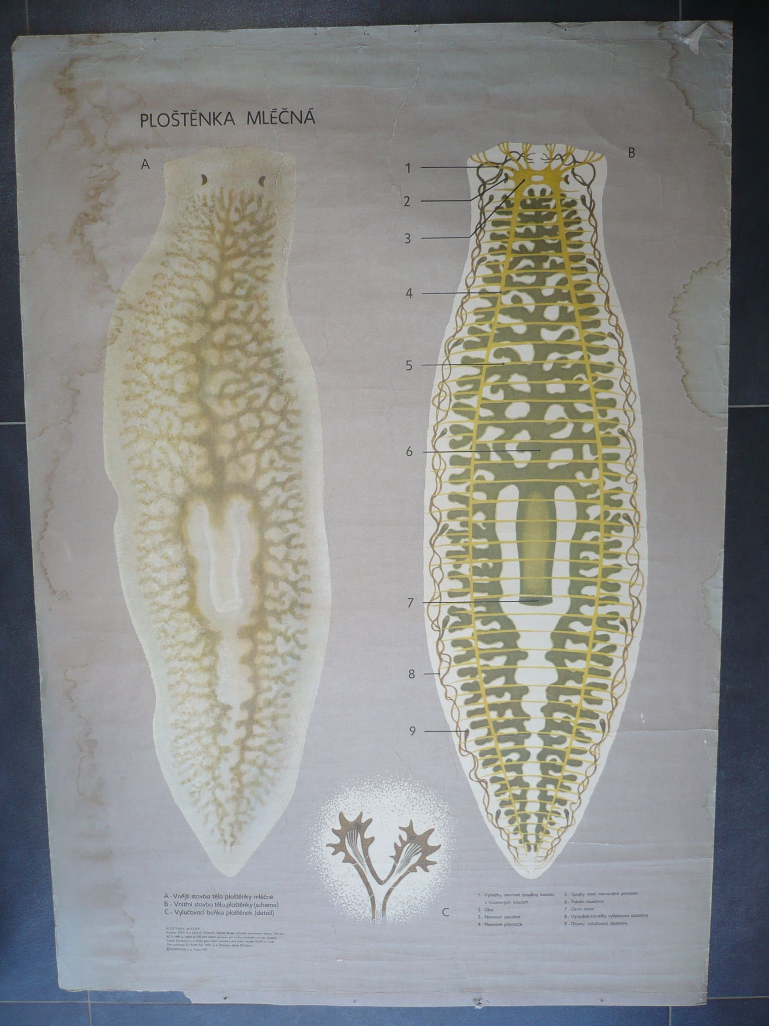 Starý školní plakát, papír s tyčkami, podlepeno plátnem. Vyrobeno podomácku (nejedná se o tisk).