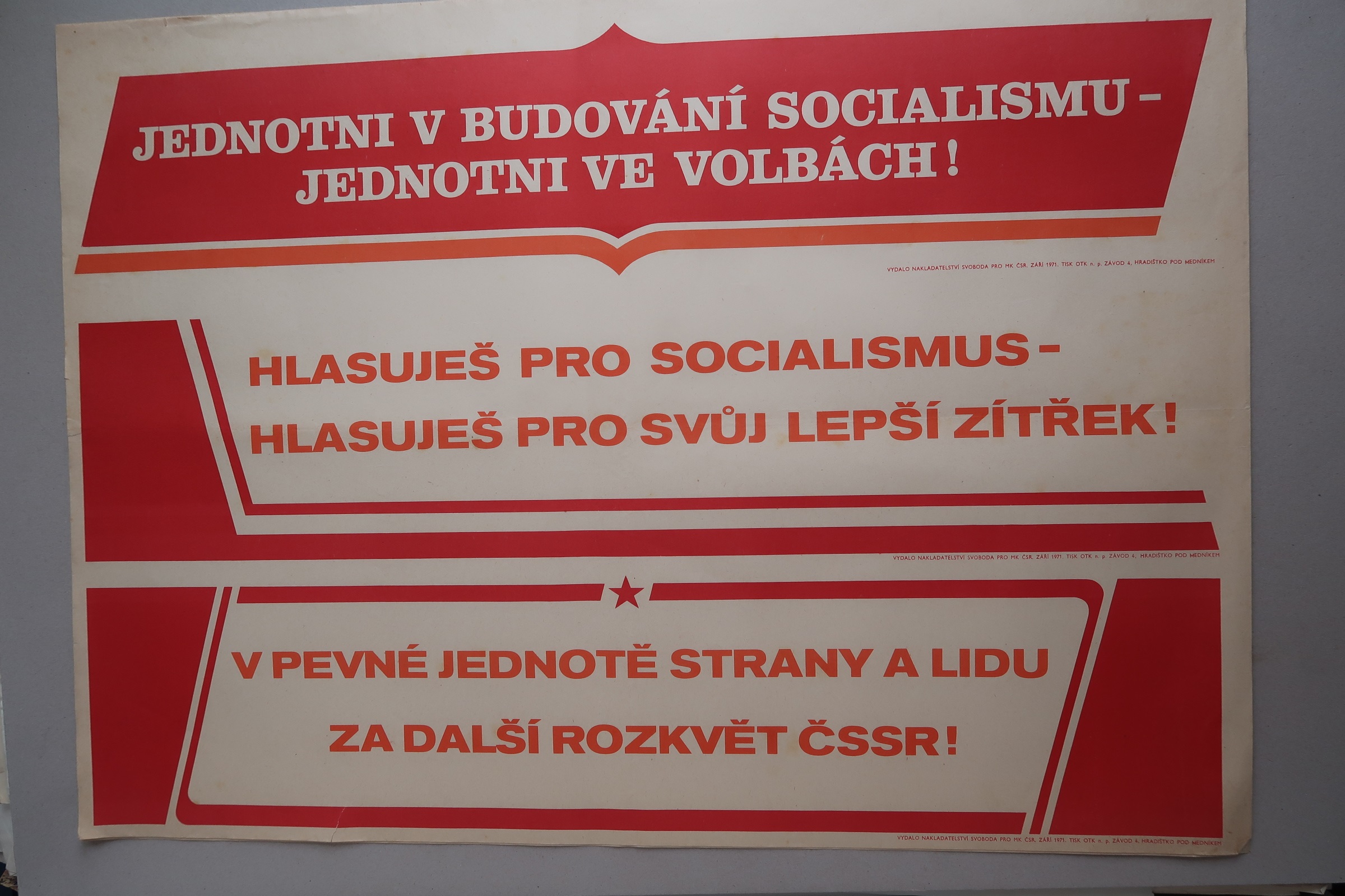 Propagační plakát. Papírový arch s barevným potiskem.
