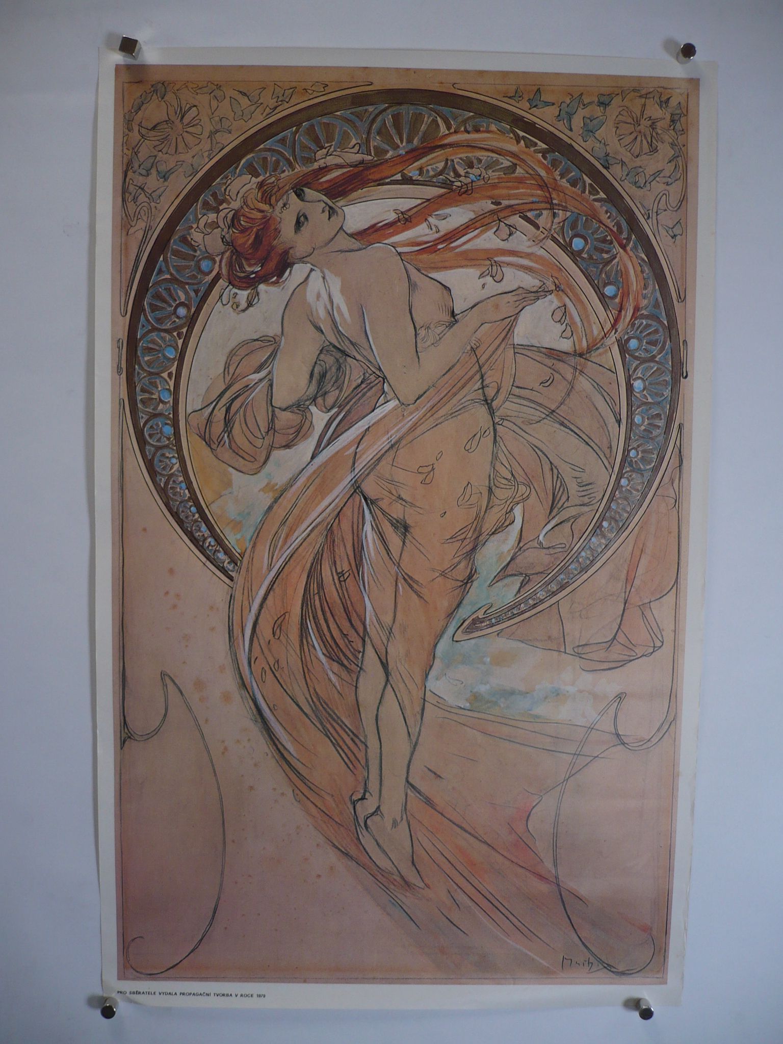 Starý propagační plakát určený k pověšení na nástěnku a do okna, měkký papír s barevným potiske..