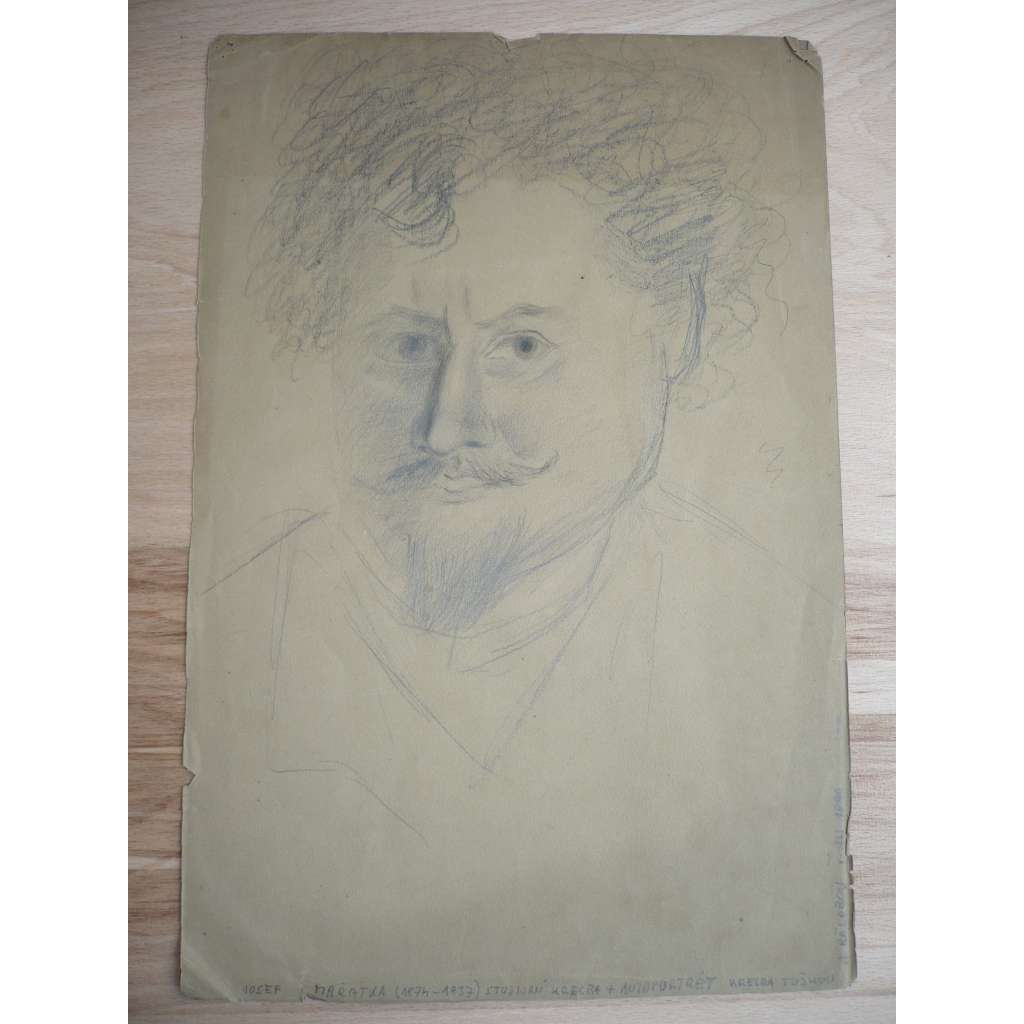 Josef Mařatka (1874 - 1937) - Studijní kresba + autoportrét - kresba tužkou a bělobou, grafika cca 1890, signováno