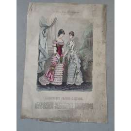 Biedermeier 1880 [móda, oblečení, ženy] - kolorovaná litografie cca 1850, grafika, nesignováno