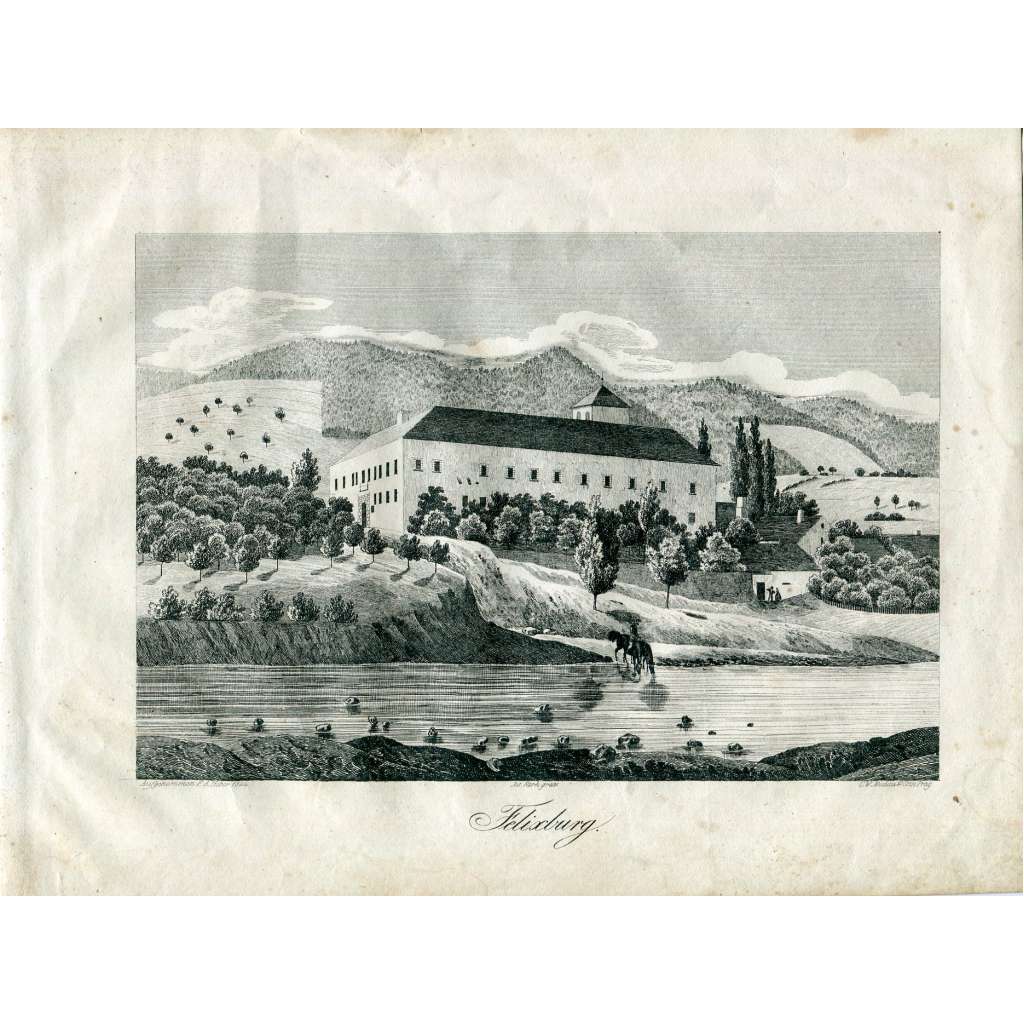 F. A. Heber – Zámek Felixburg (Felixpurk, Felixburk), Klášterec nad Ohří (České hrady, zámky a tvrze) oceloryt