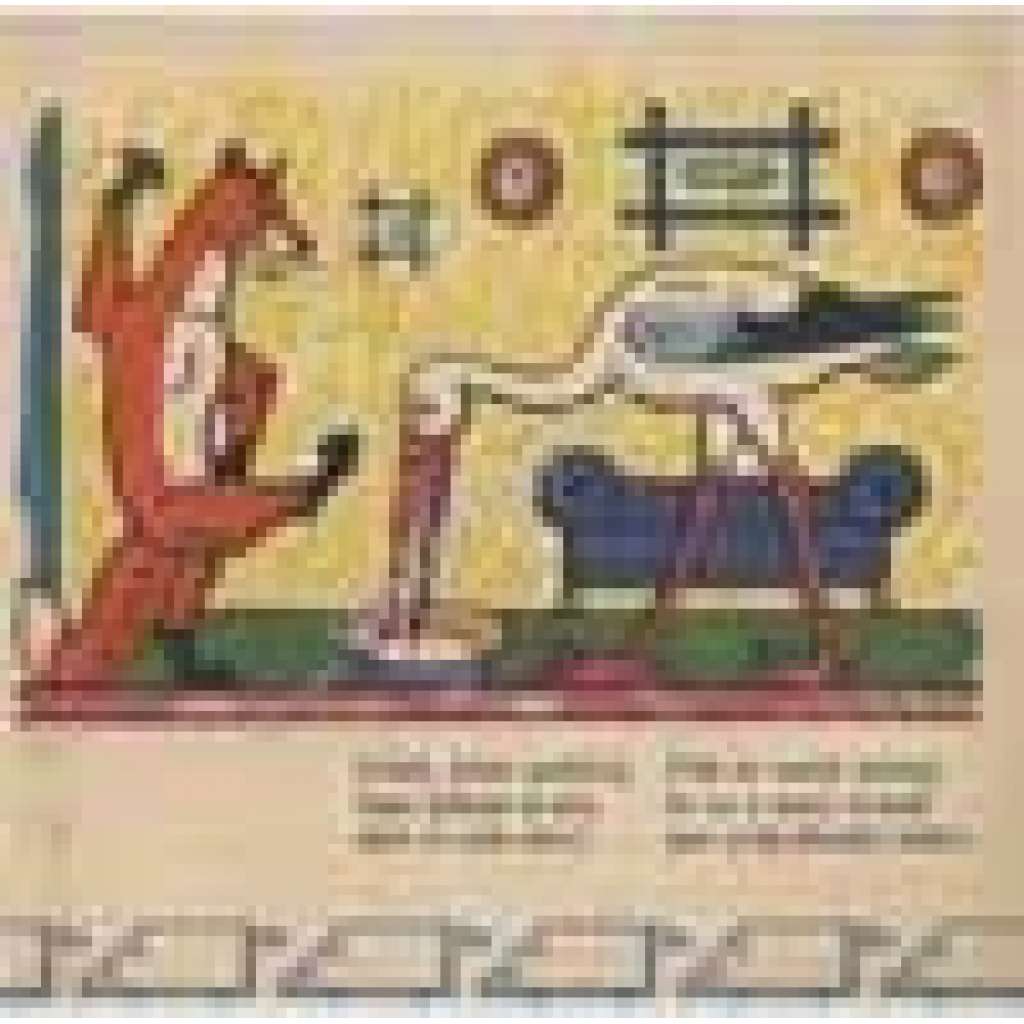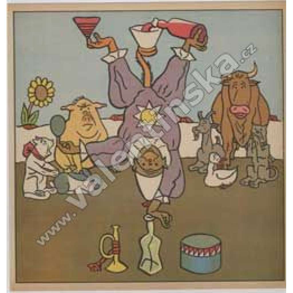 cislo l/93 Josef Lada/Liška a čáp v místnosti Barevná zinkografie z 30.let 20.století, rozmery 265x2..