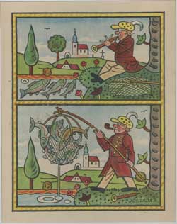 Ilustroval Josef Lada. Vydal Albatros, nakladatelství pro děti a mládež, v Praze 1985. Šesté vydání. Původní kartónové rozkládací leporelo.