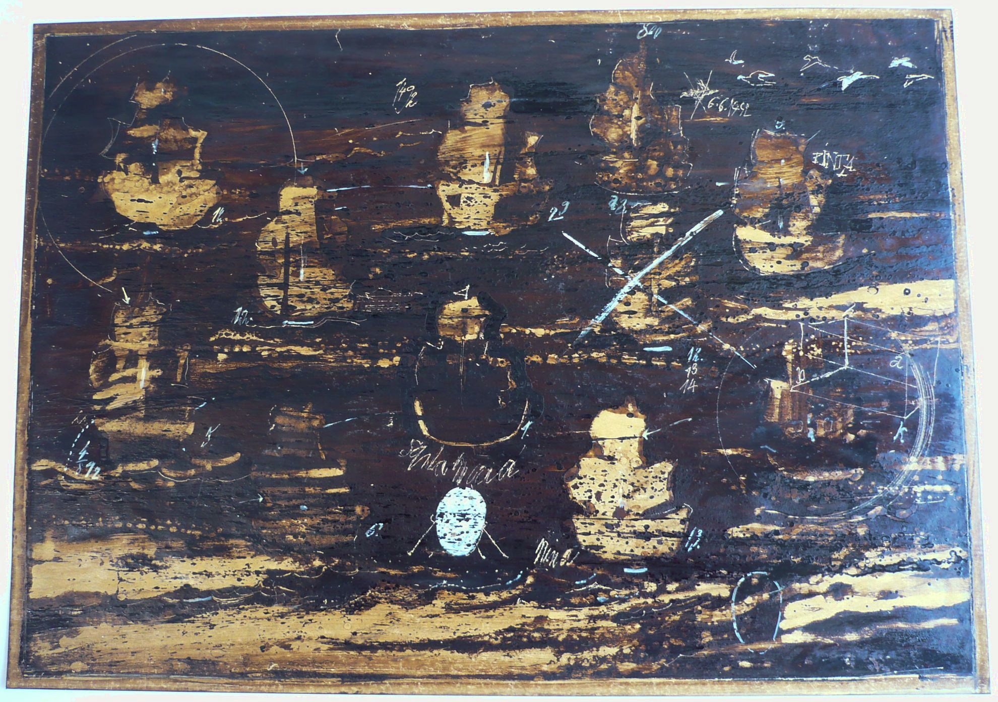 Materiálový tisk (strukturální grafika), 1962 - podepsáno. Rozměry: 750 x 570.