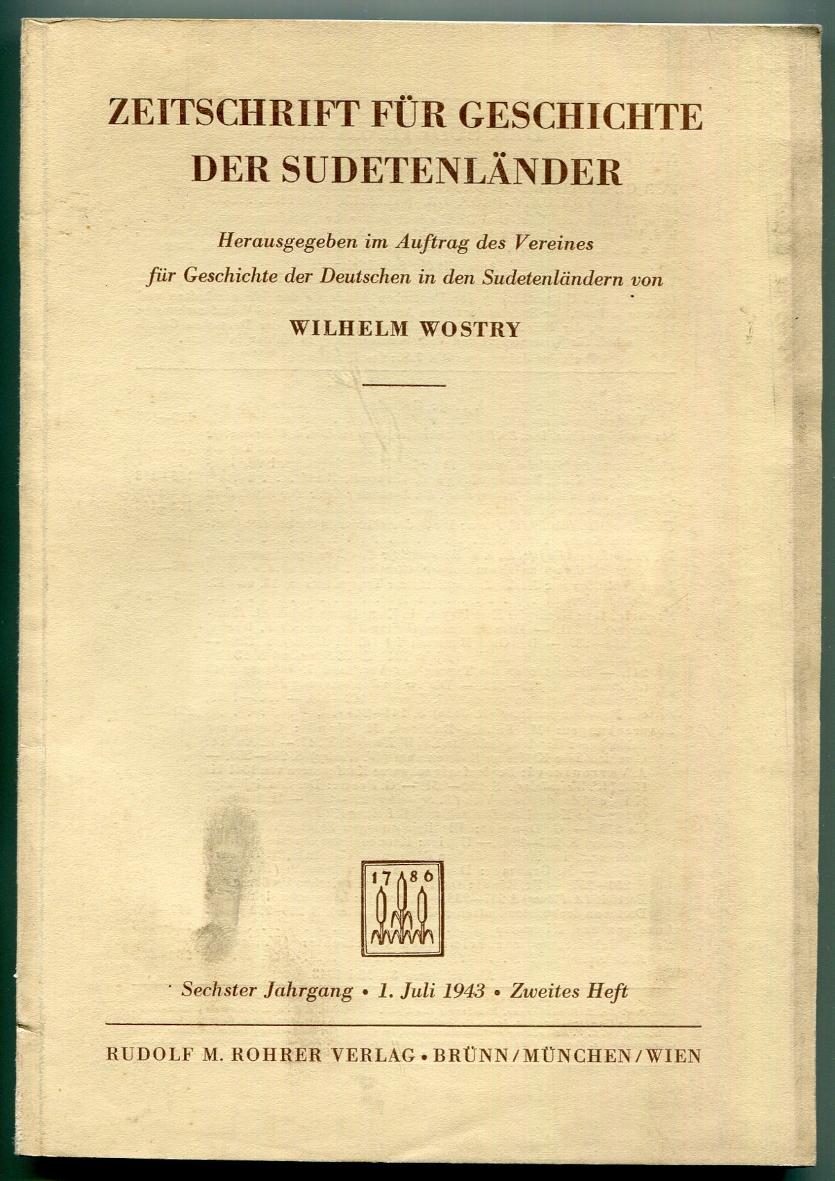 Brünn - München - Wien: Rudolf M. Rohrer Verlag 1943. Herausgegeben im Auftrage des Vereins für Geschichte der Deutschen in den Sudetenländern von Univ.-Prof. Ddr. Wilhelm Wostry unter Mithilfe von Do