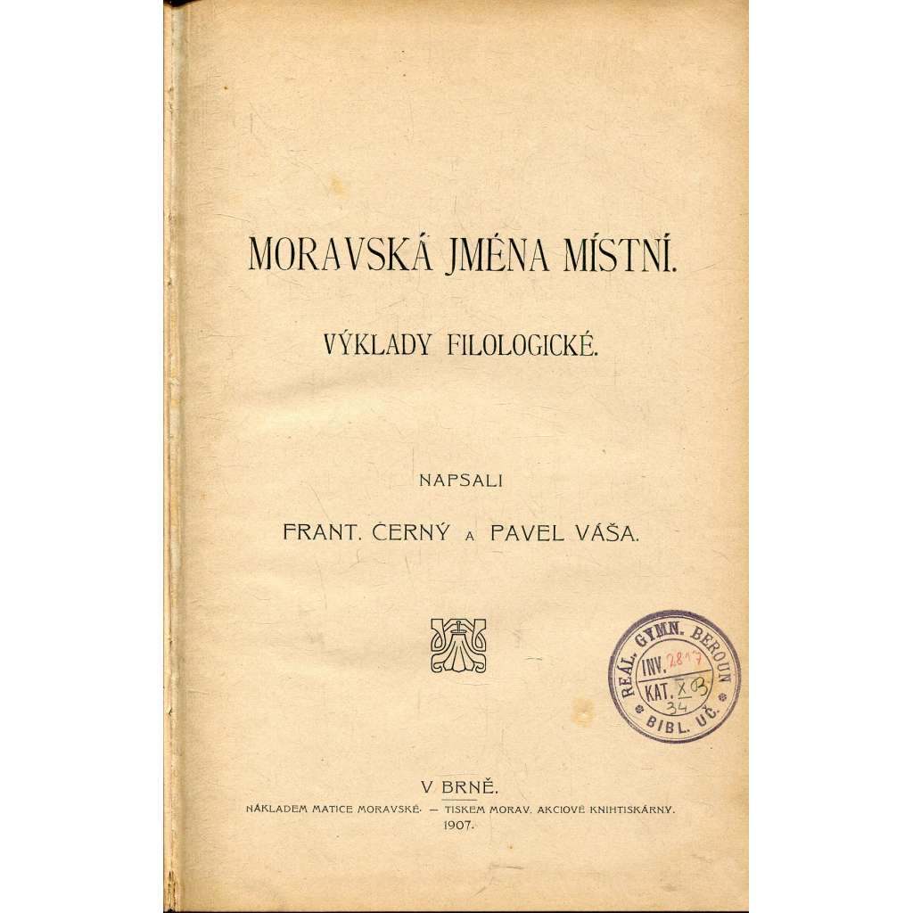 Matice moravská, Brno 1907