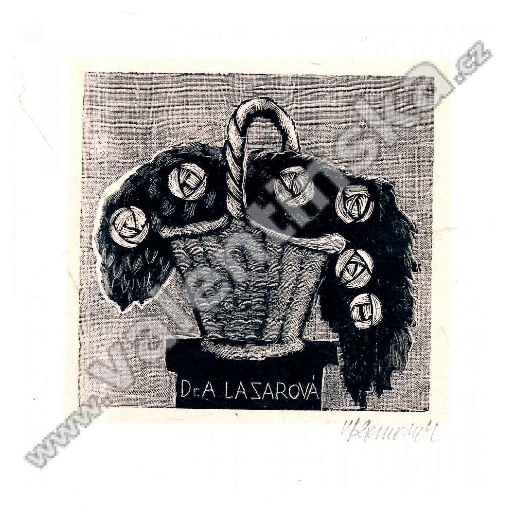 Ex libris : M. Tomašáka. Rozměry leptu: 51 x 89 mm.